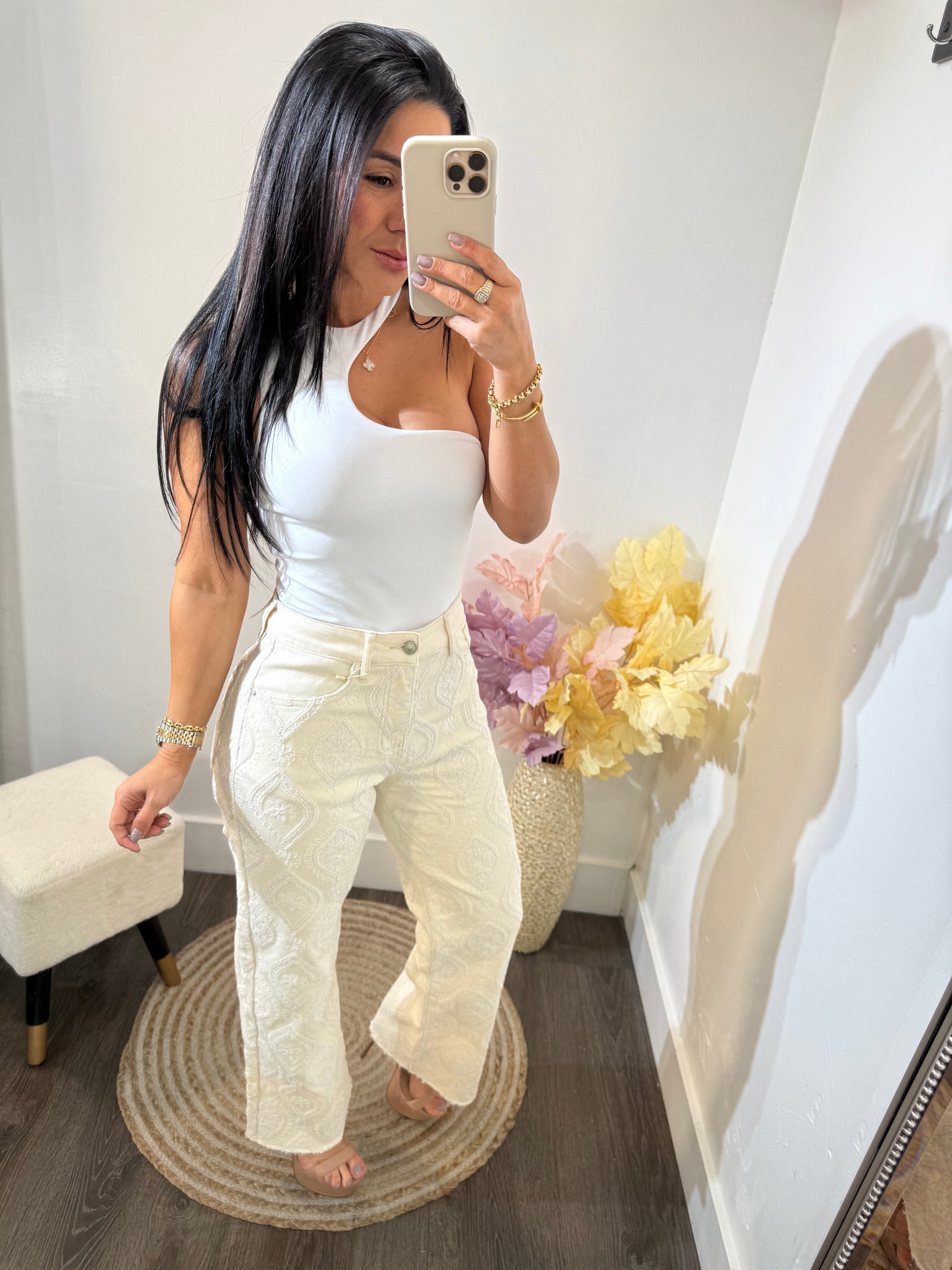 Jean con strech y detalles bordados