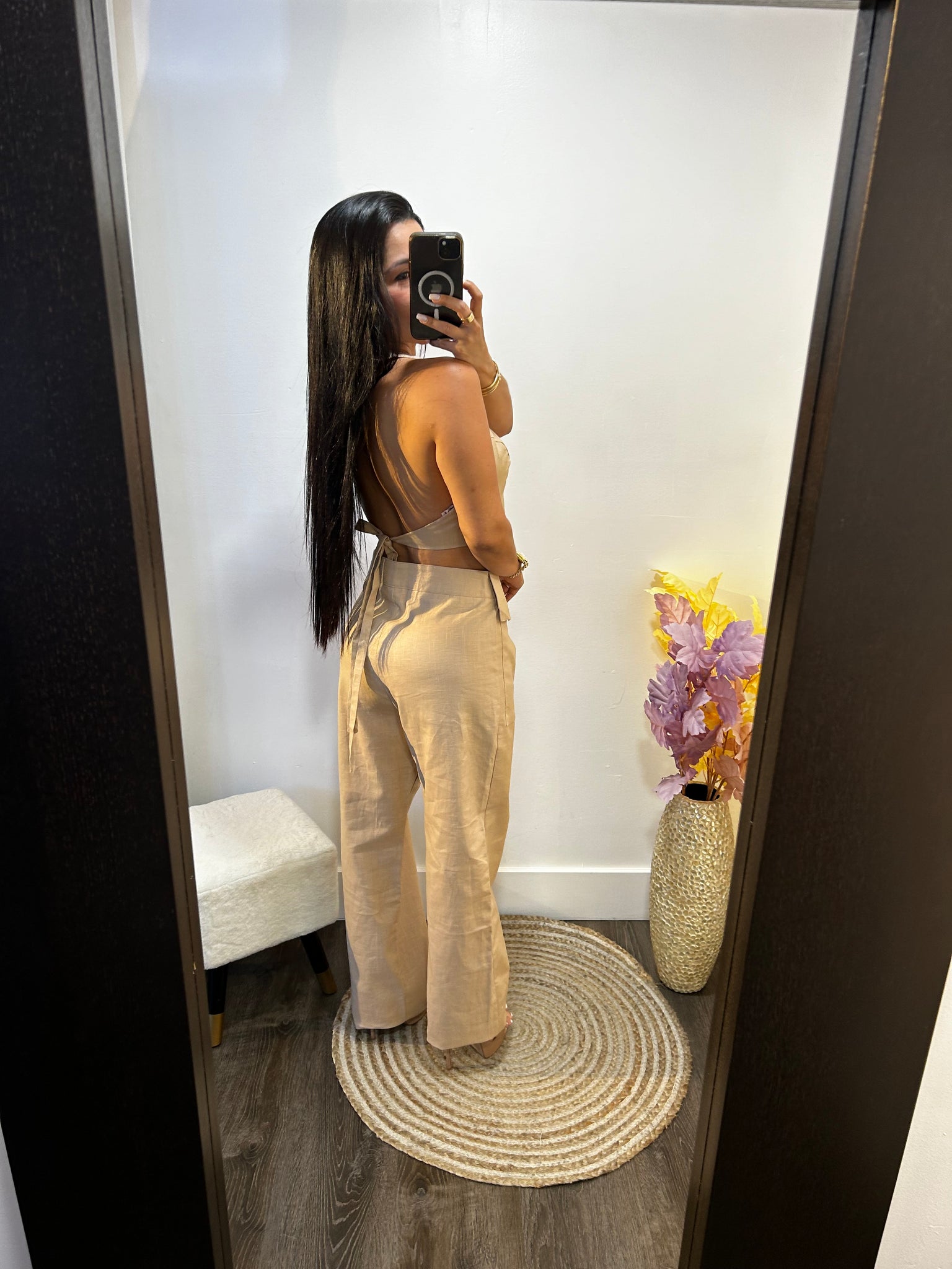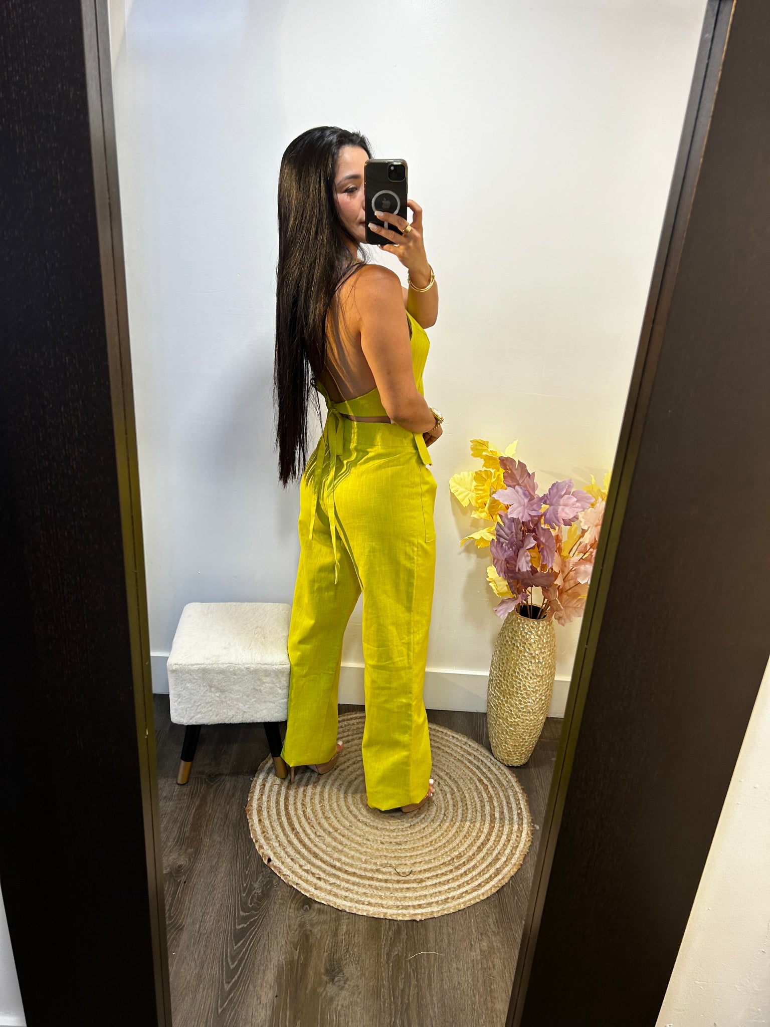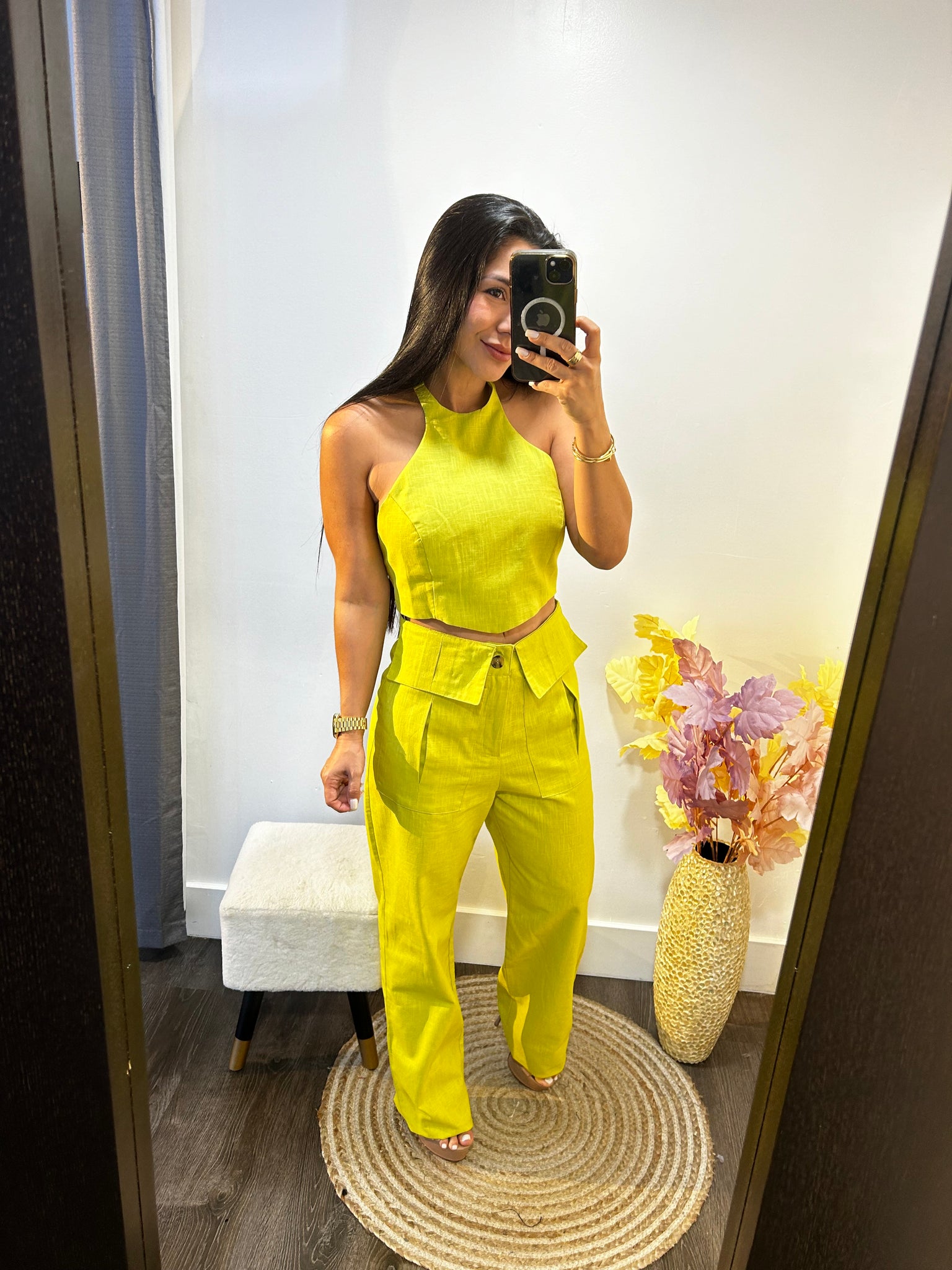 pantalón alto con detalle en la parte de adelante de bolsillos.