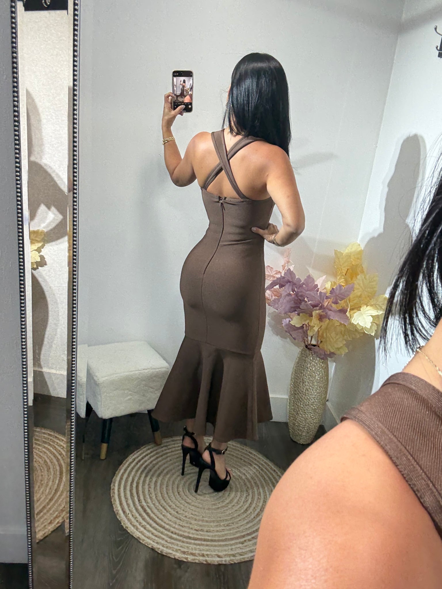 cruzado en la parte de atras y Corte tipo sirens en la parte de abajo