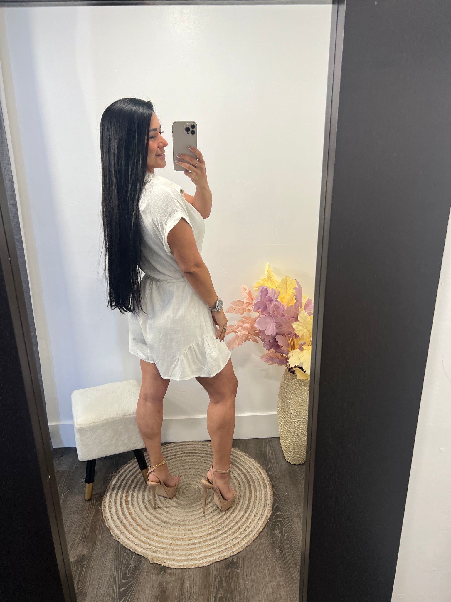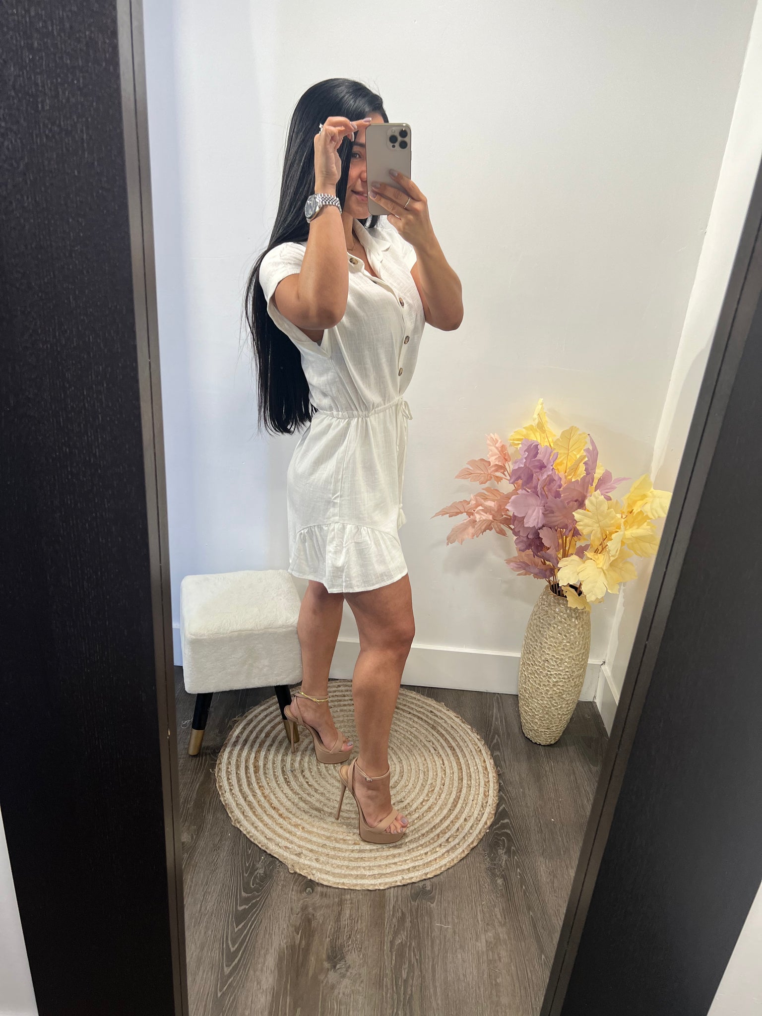 enterizo de lino corto con forro ajustado a la cintura