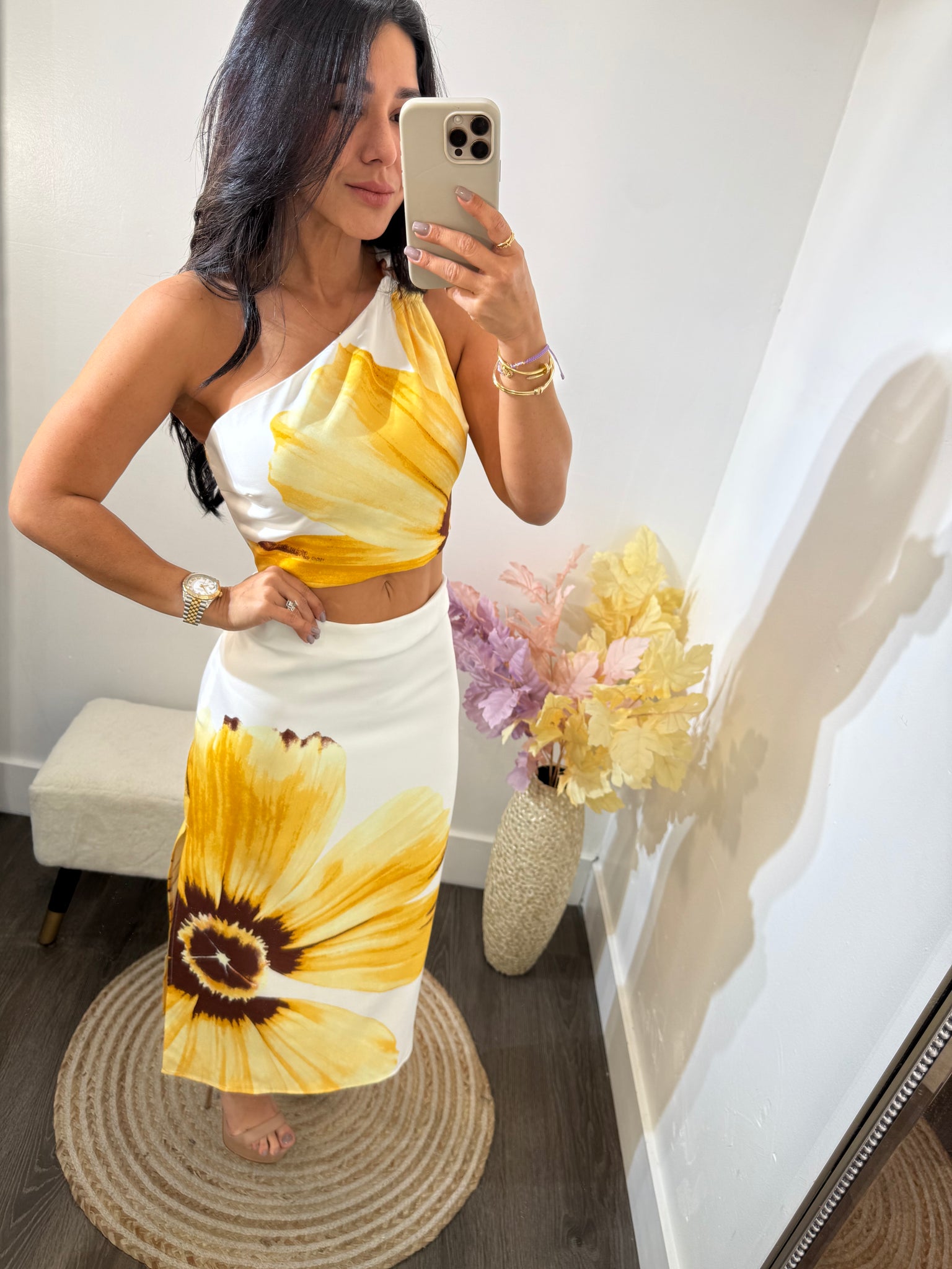 tela con strech top asimetrico con aro en un hombro y zipper a un lado