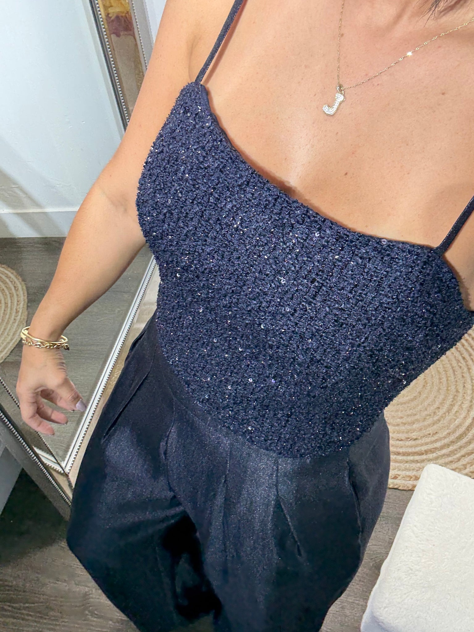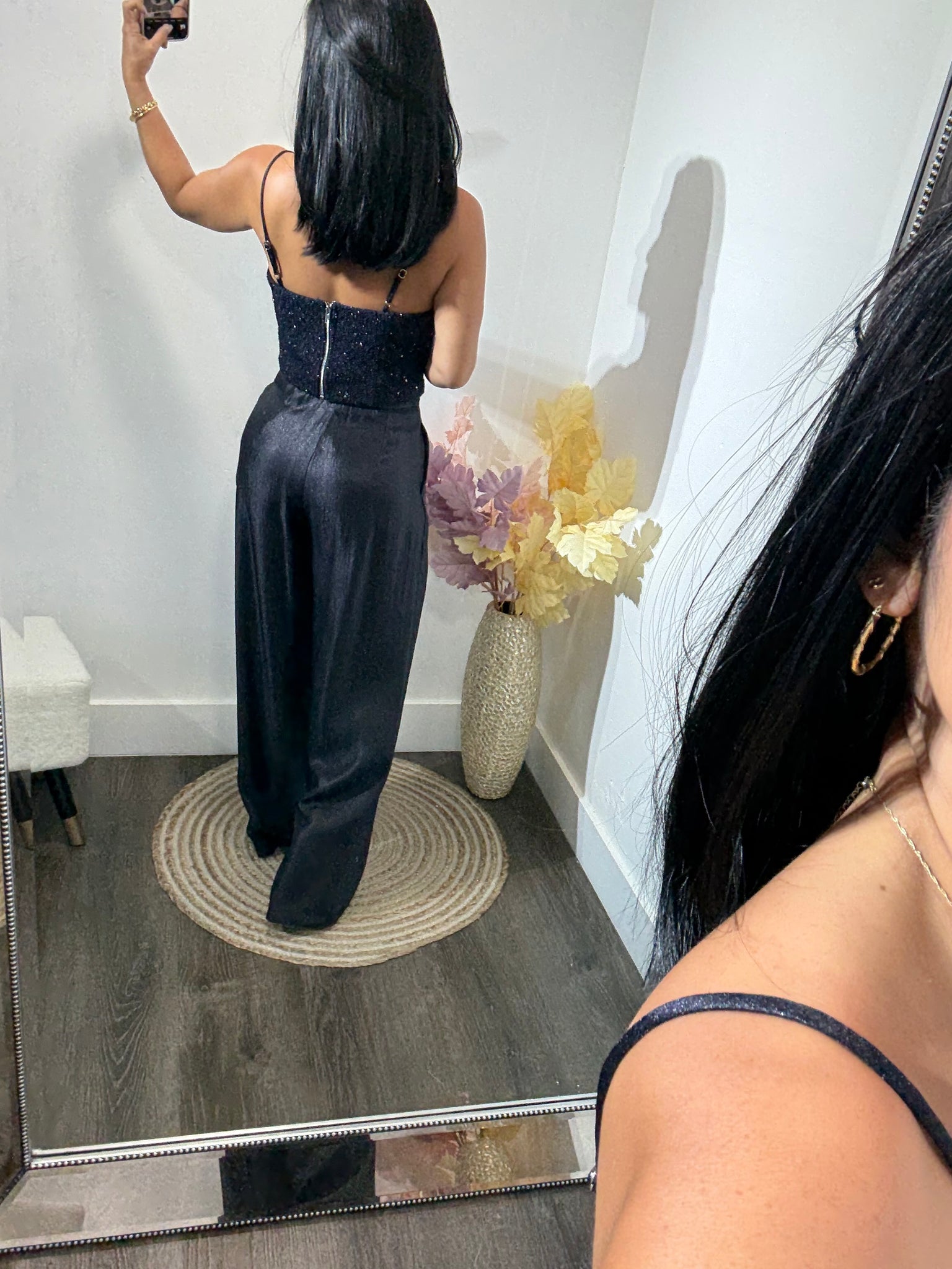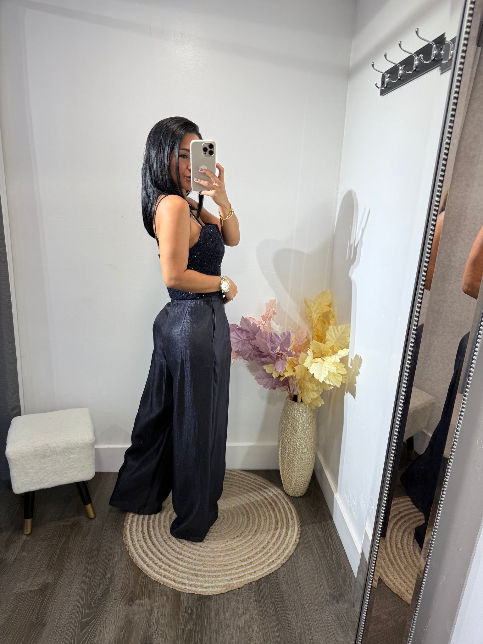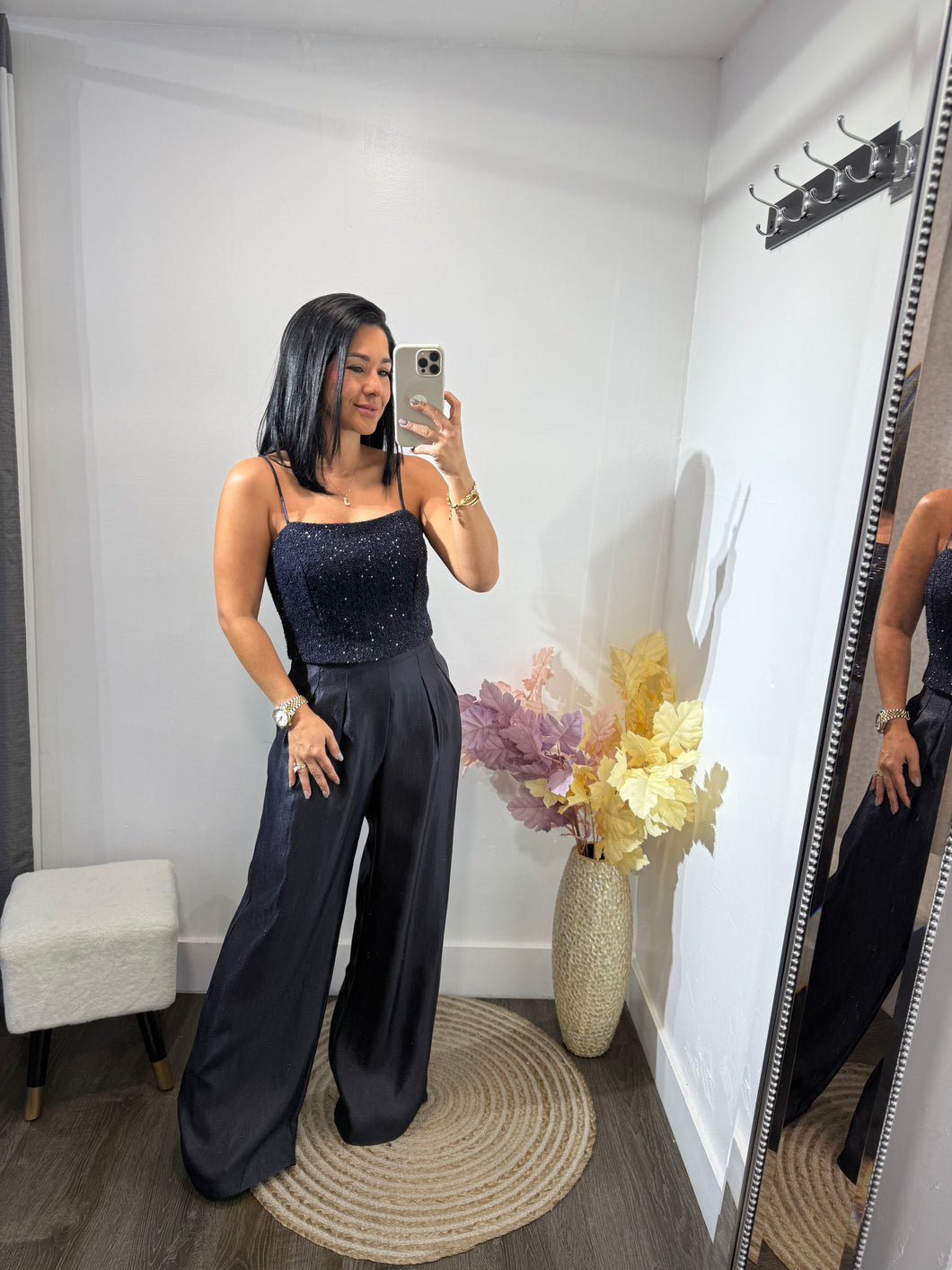 top con tela brilliante tirantes ajustables y zipper en la espalda