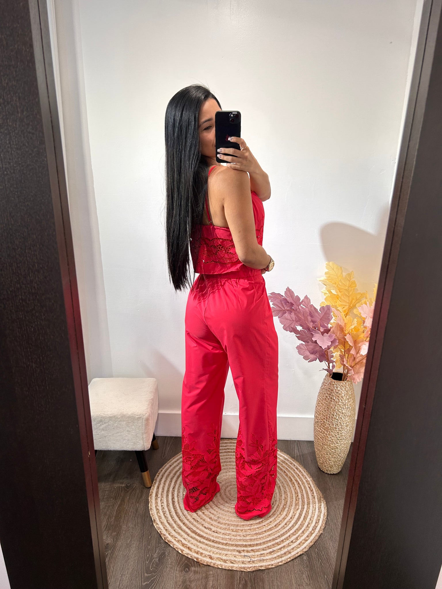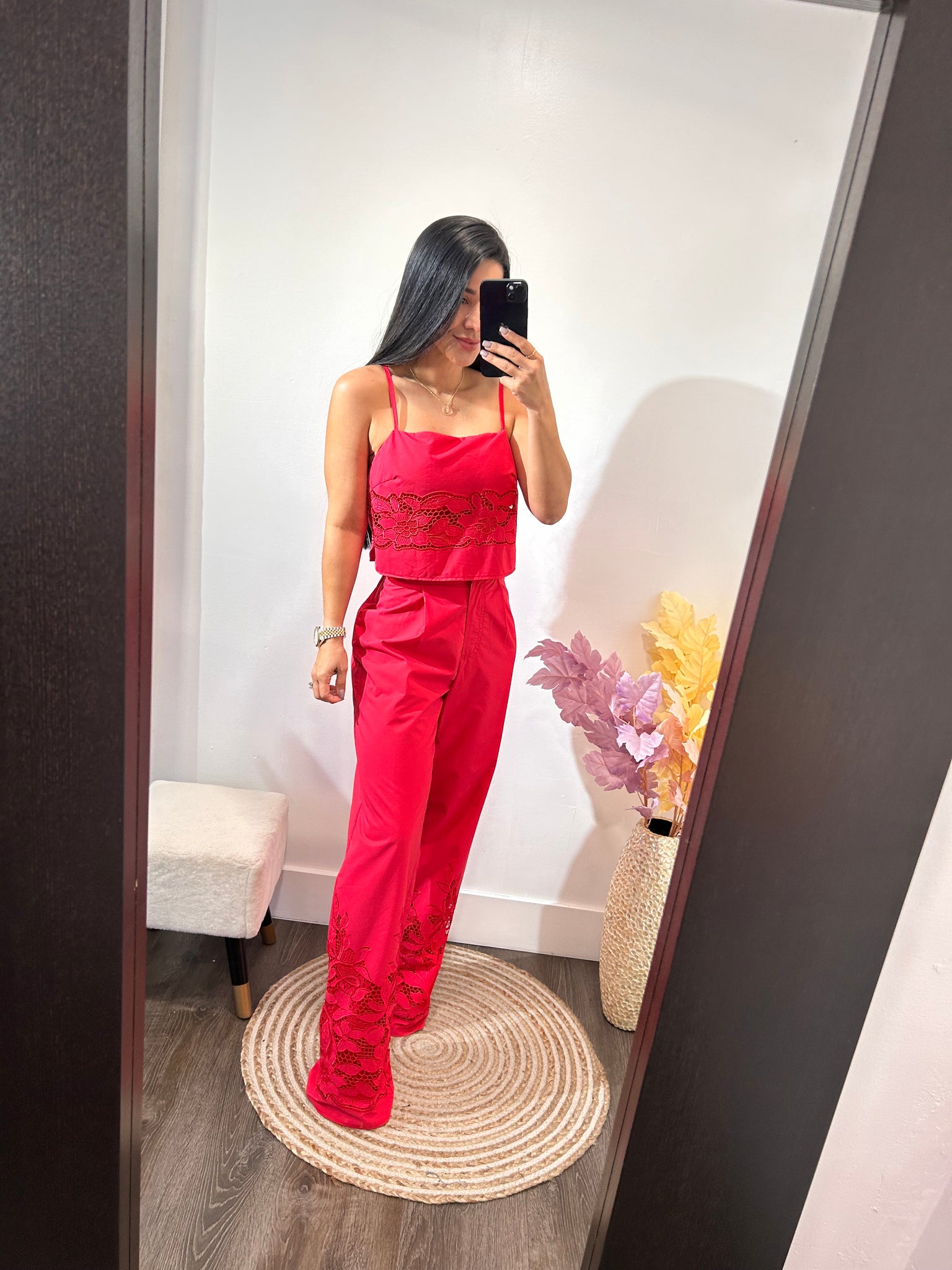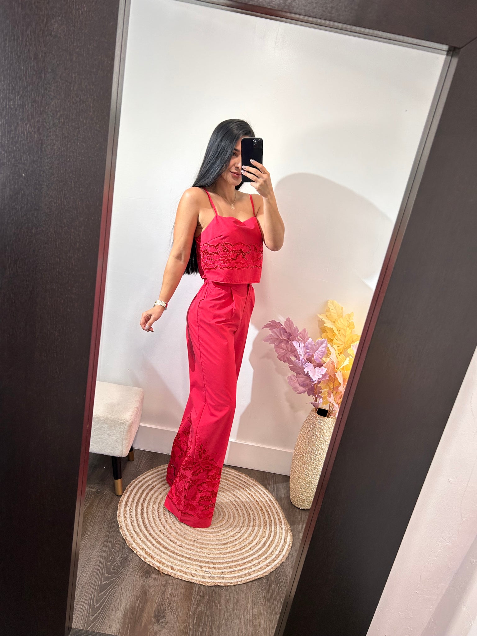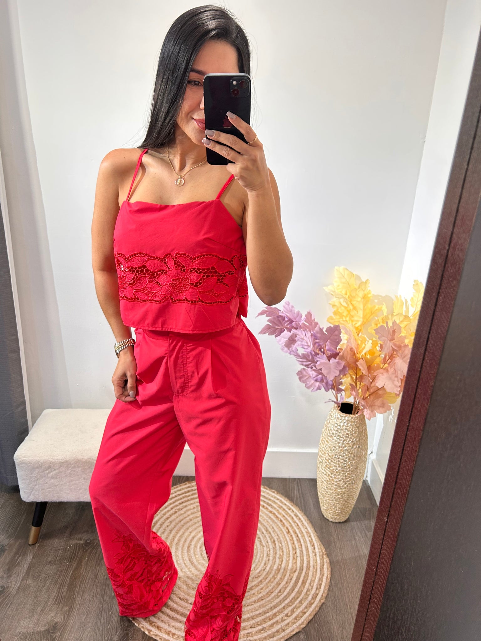 Top con tiras ajustables Elastico en espalda y detalle de bordado, Pantalon con Elastico en cintura y bordado en las boats.