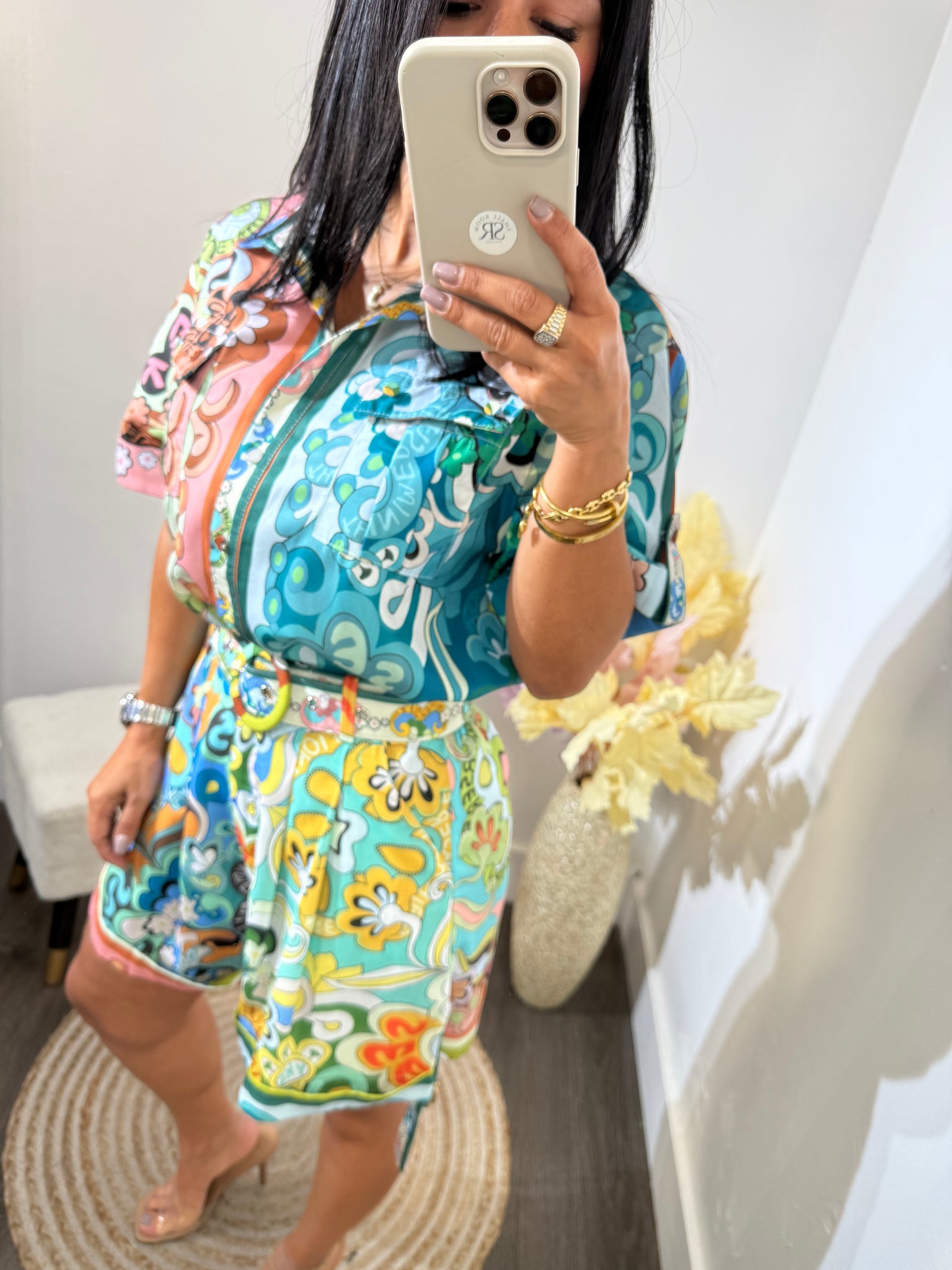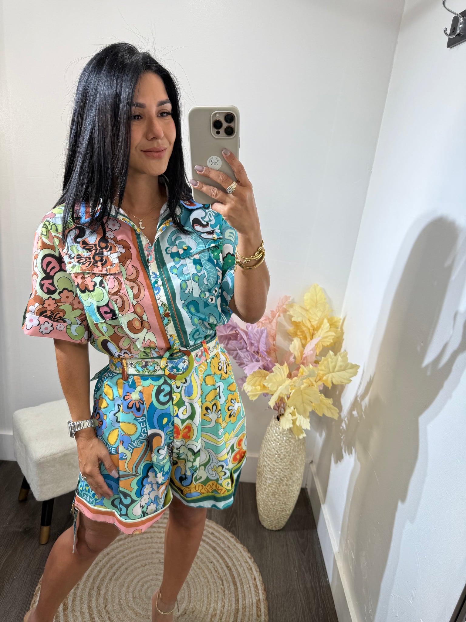 Set de 2 piezas de colores, camisa con Bolsiplast Delanteros, short ancho con cinturon de la Misma tela