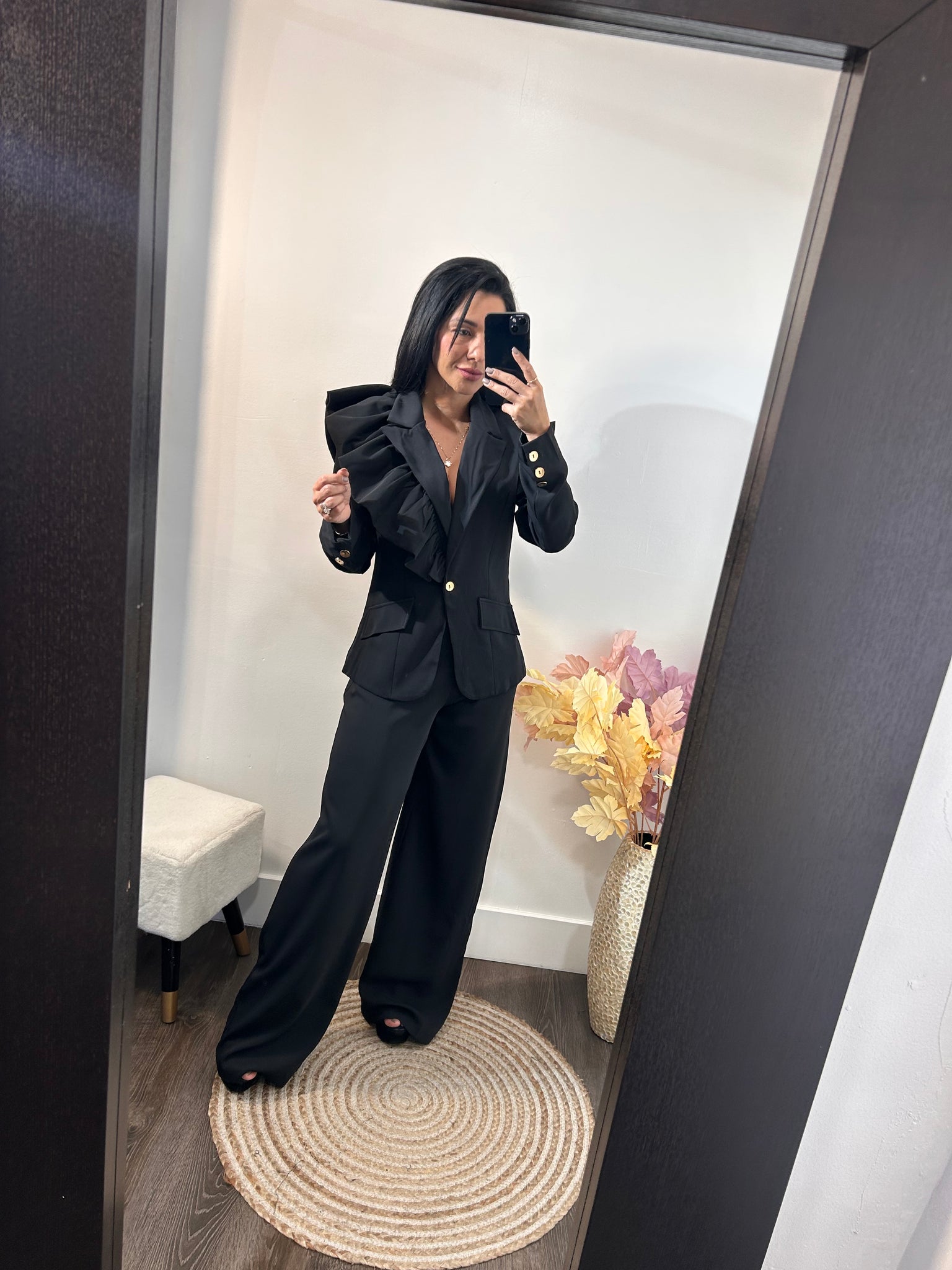 blazer con detalle en vuelo y botones dorados
