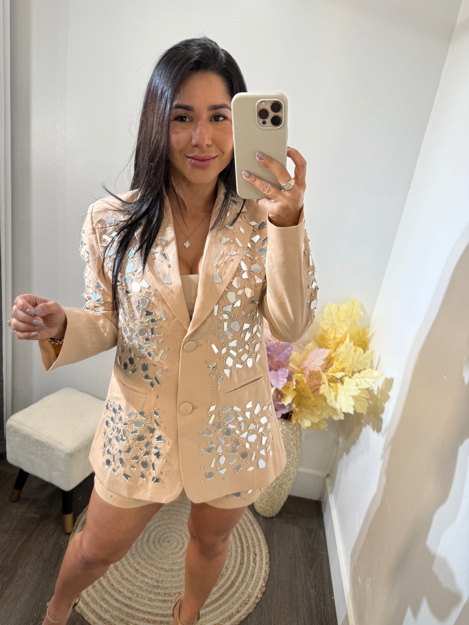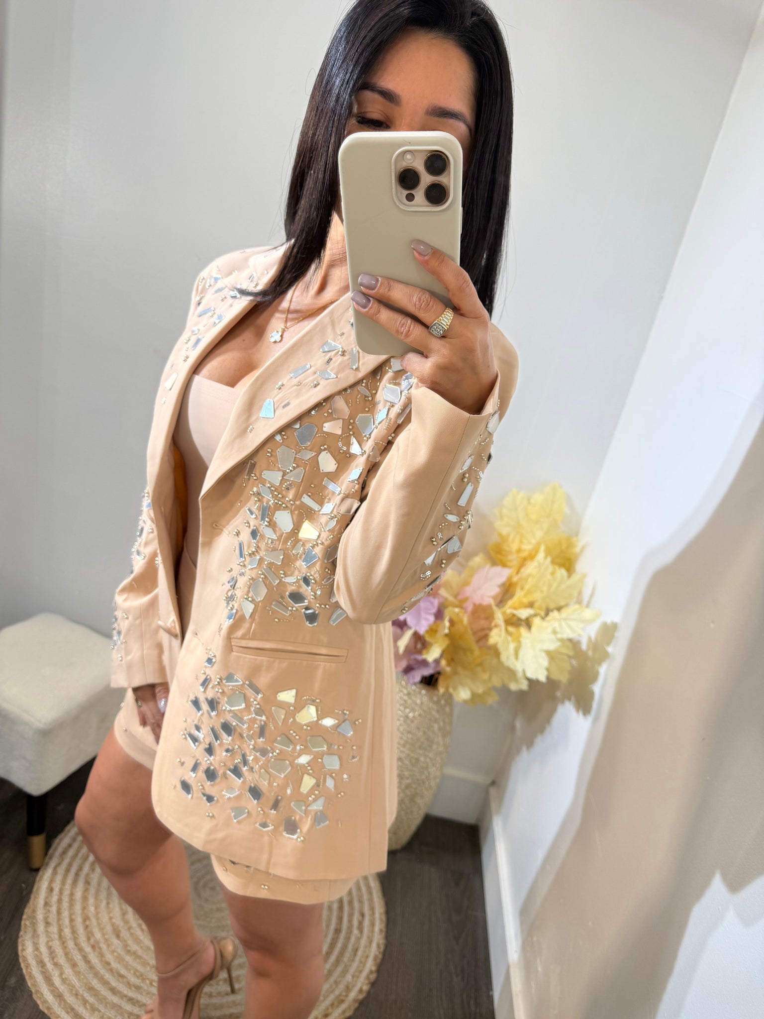 jacket y short recanado con espejos