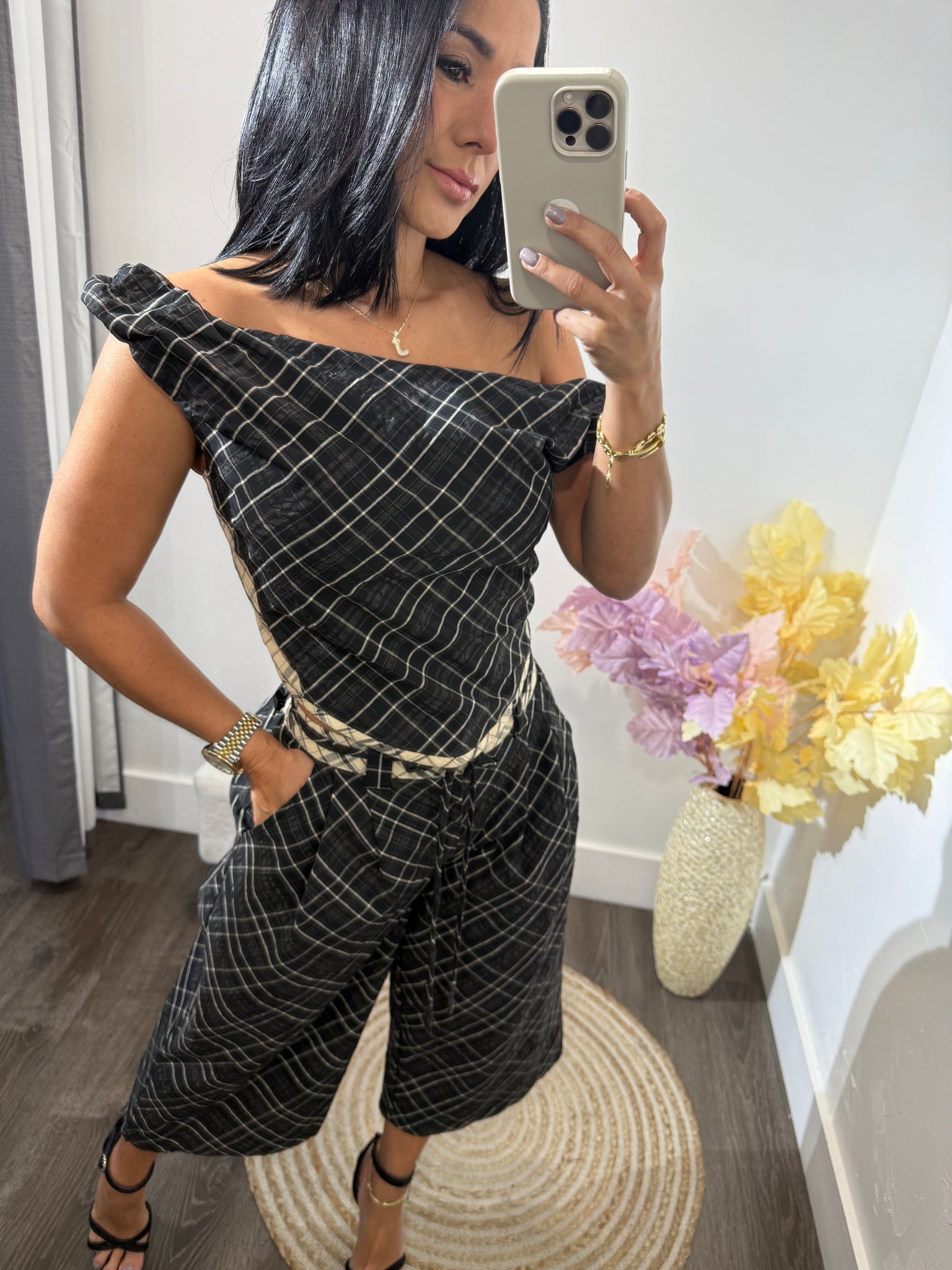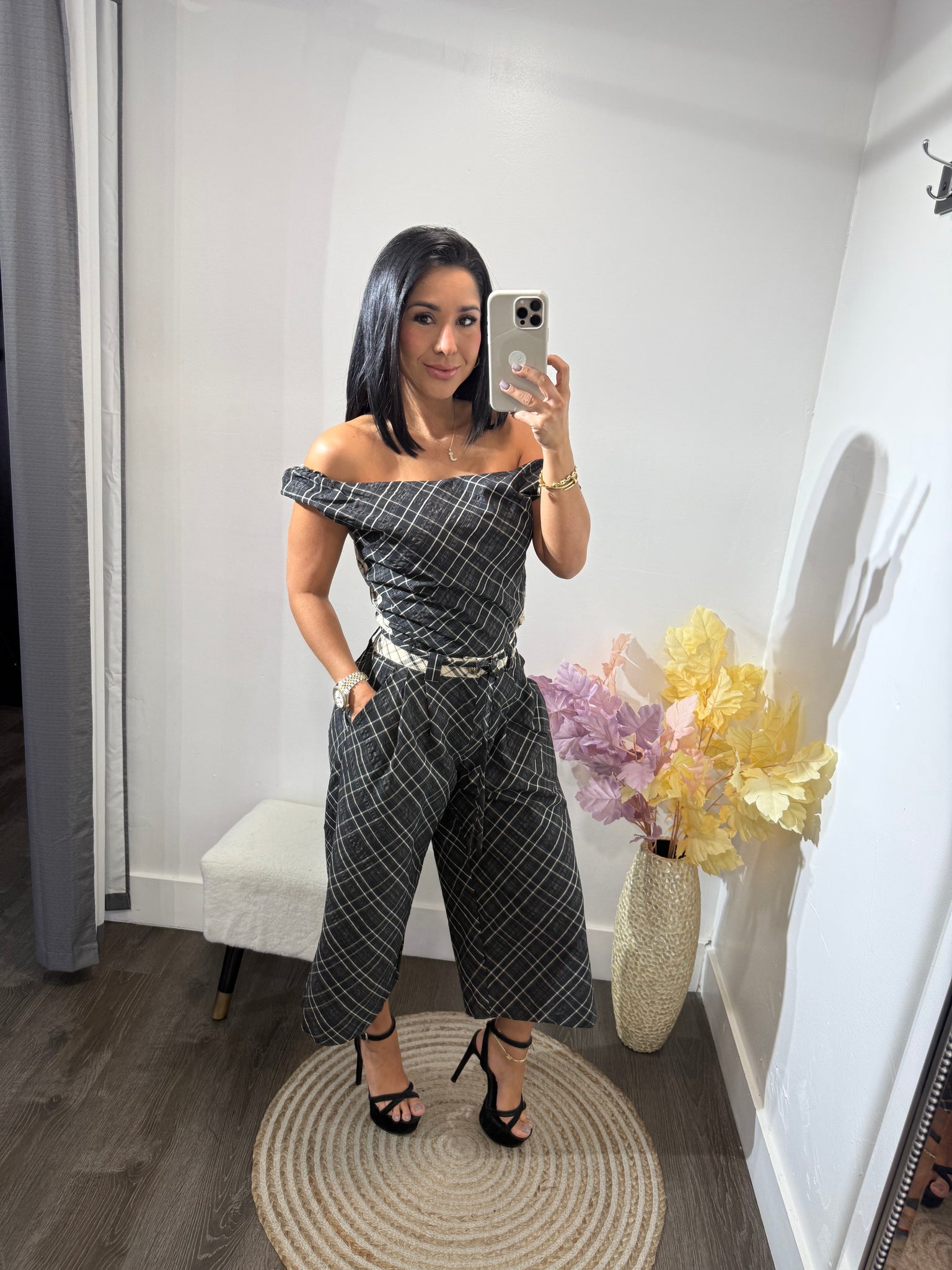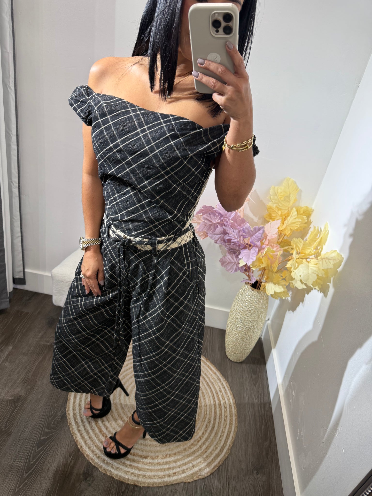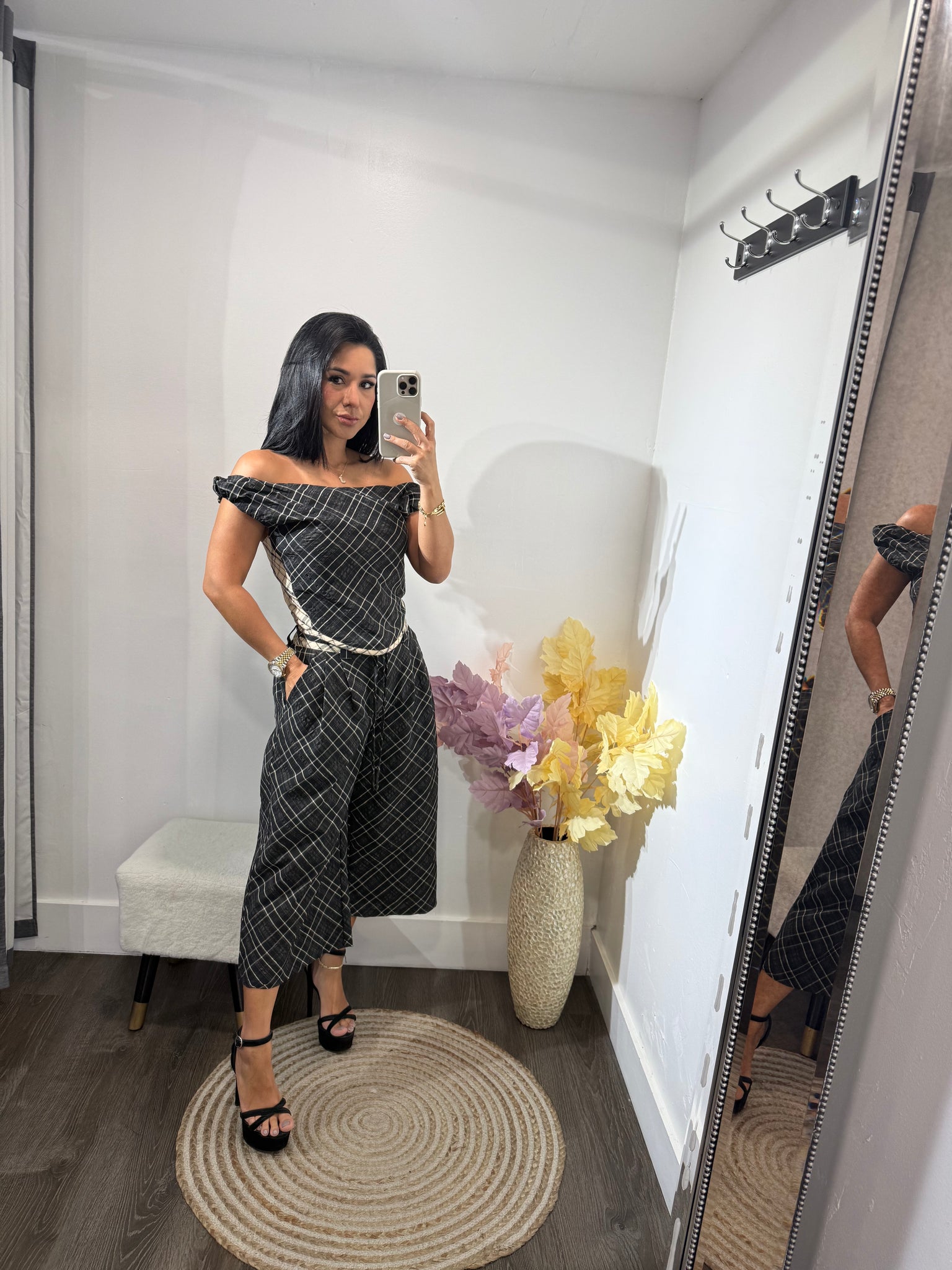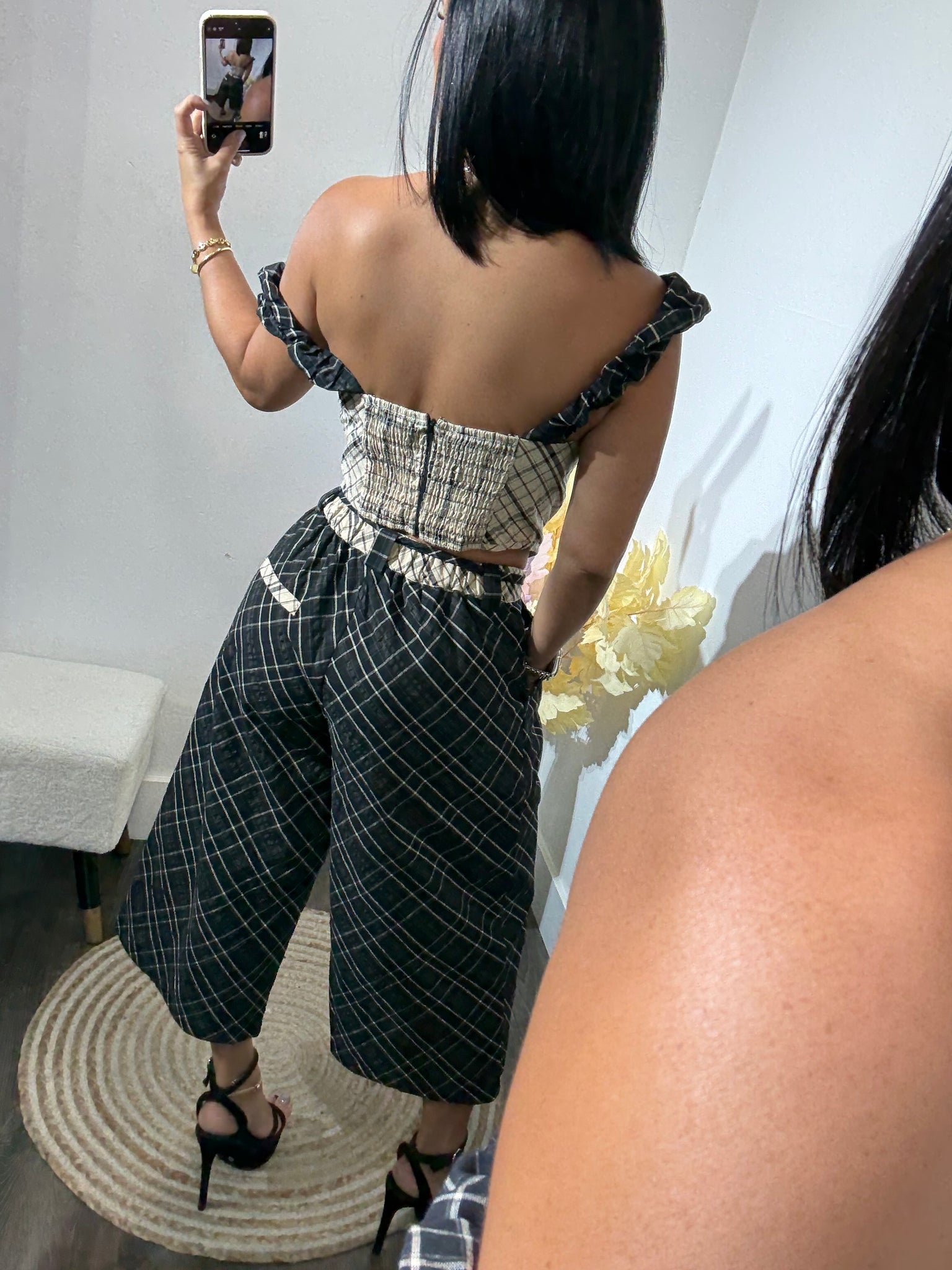 top con hombros descubiertos y elastico en el area de la espalda con zipper