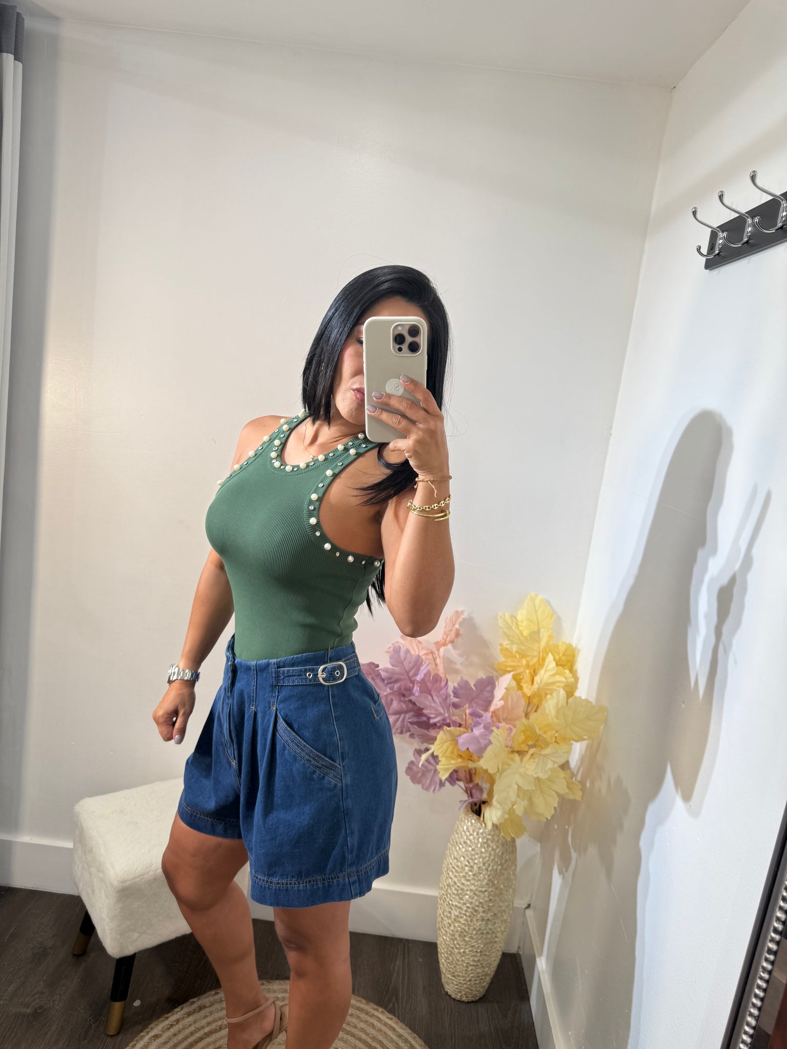 Short denim con villas ajustables en cintura
