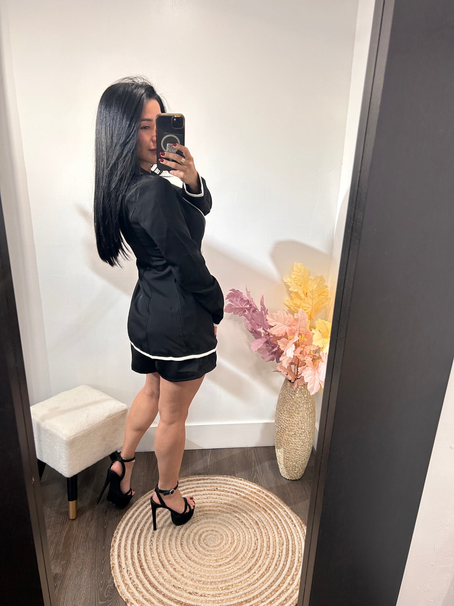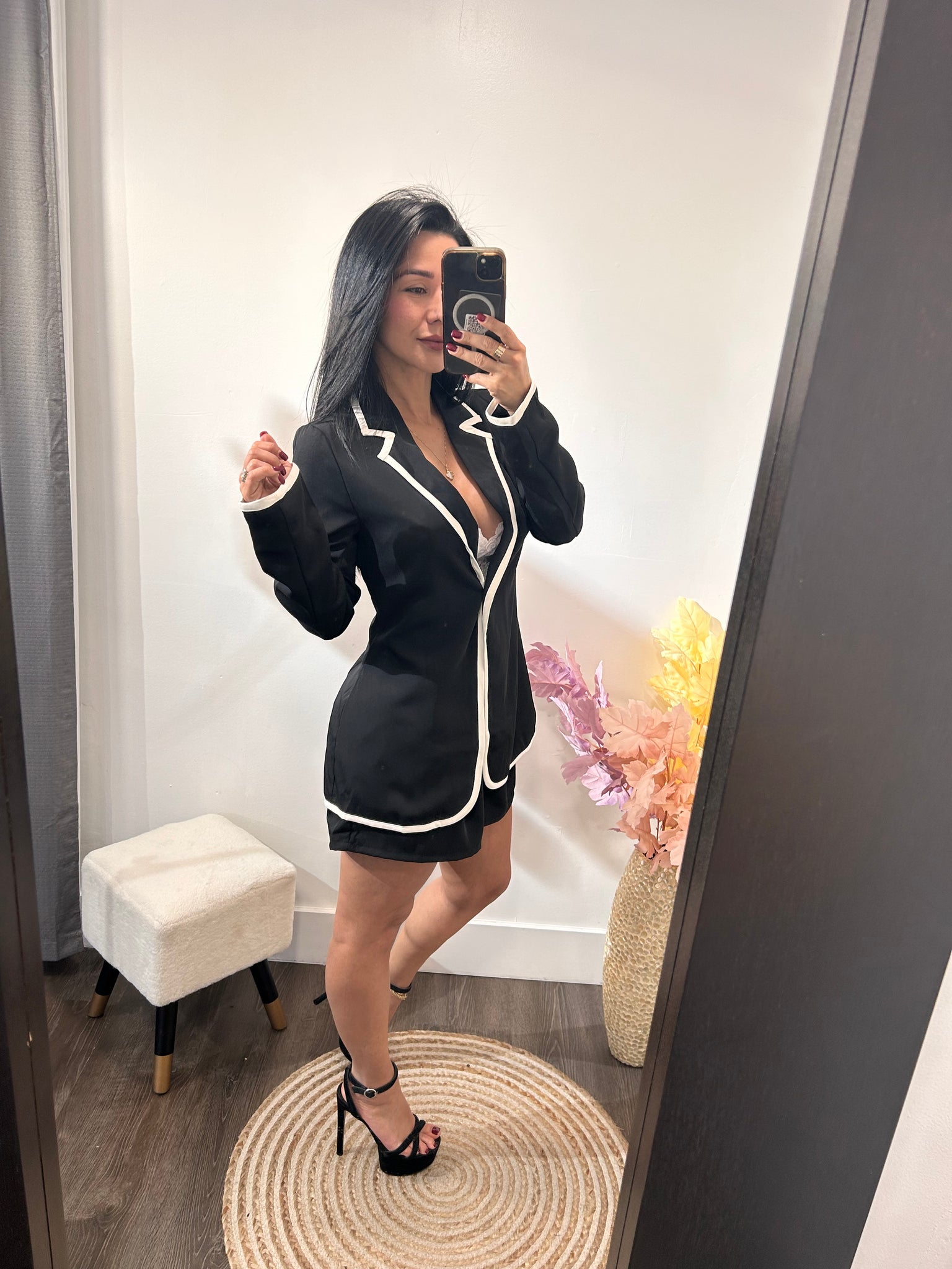 blazer con un bottom para ajustar y vivos en color blanco
