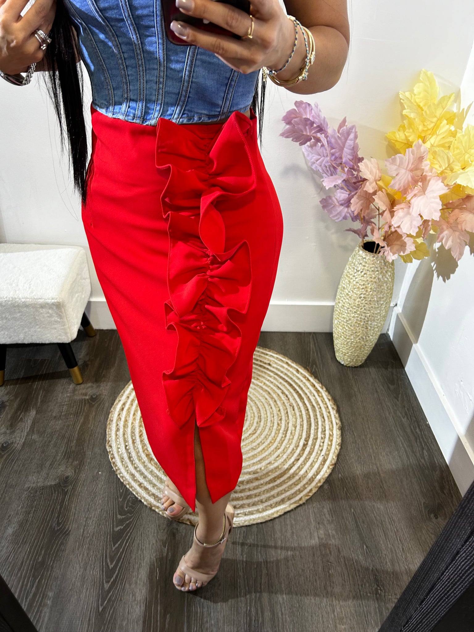 Falda roja larga con vuelo zipper en la parte de atrás poco Strech
