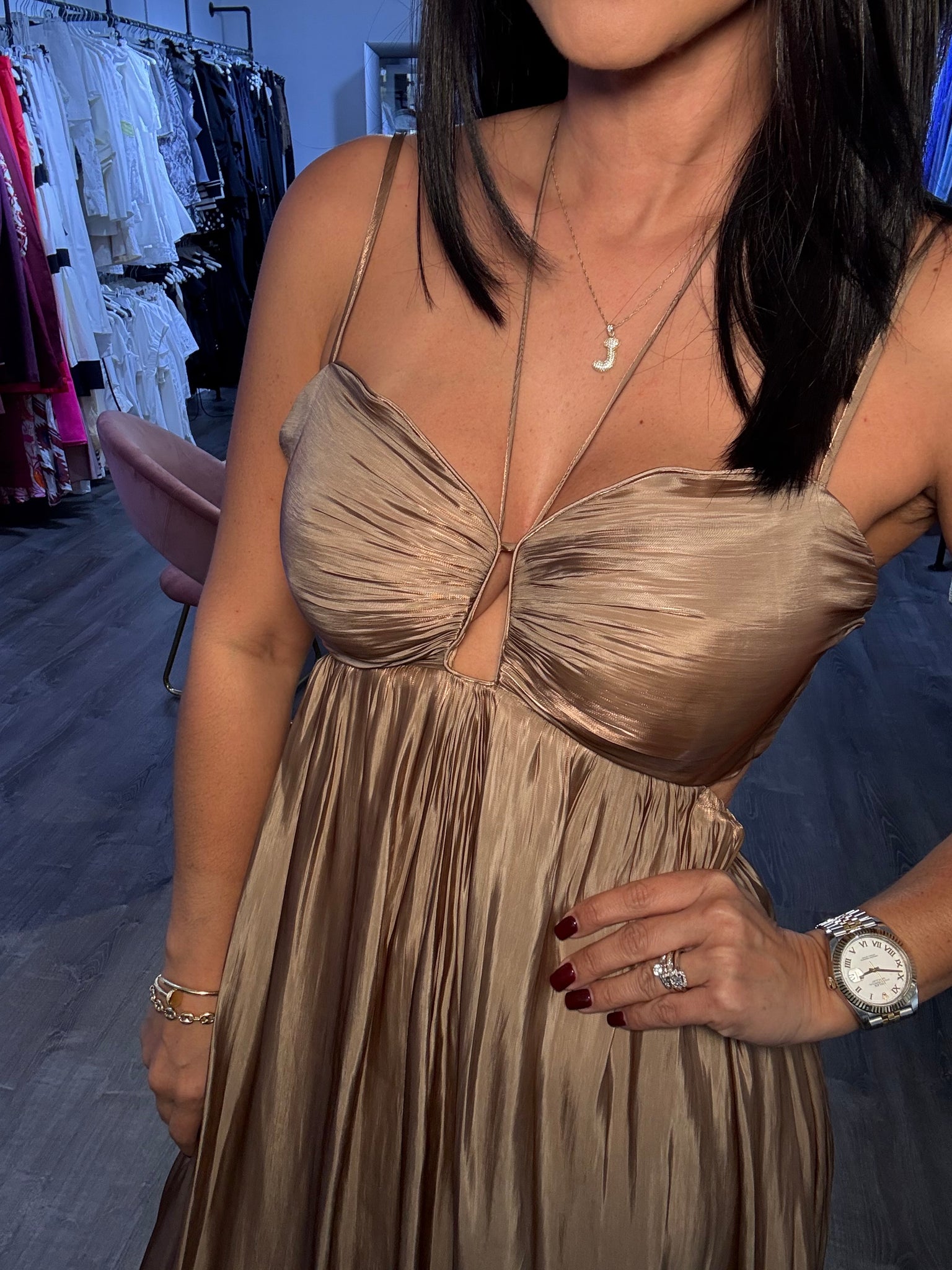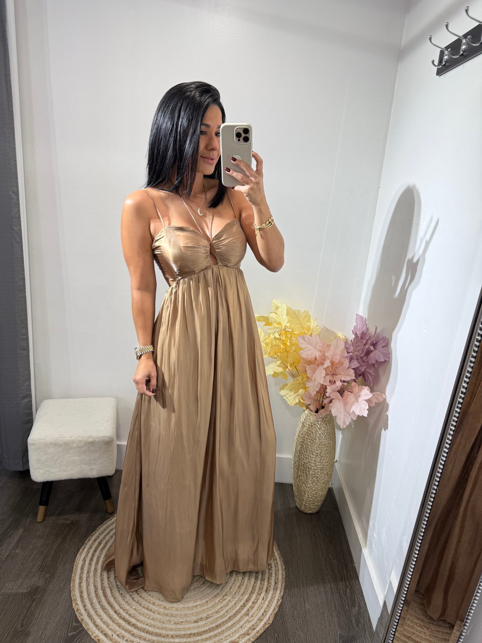 Vestido largo satinado con forro