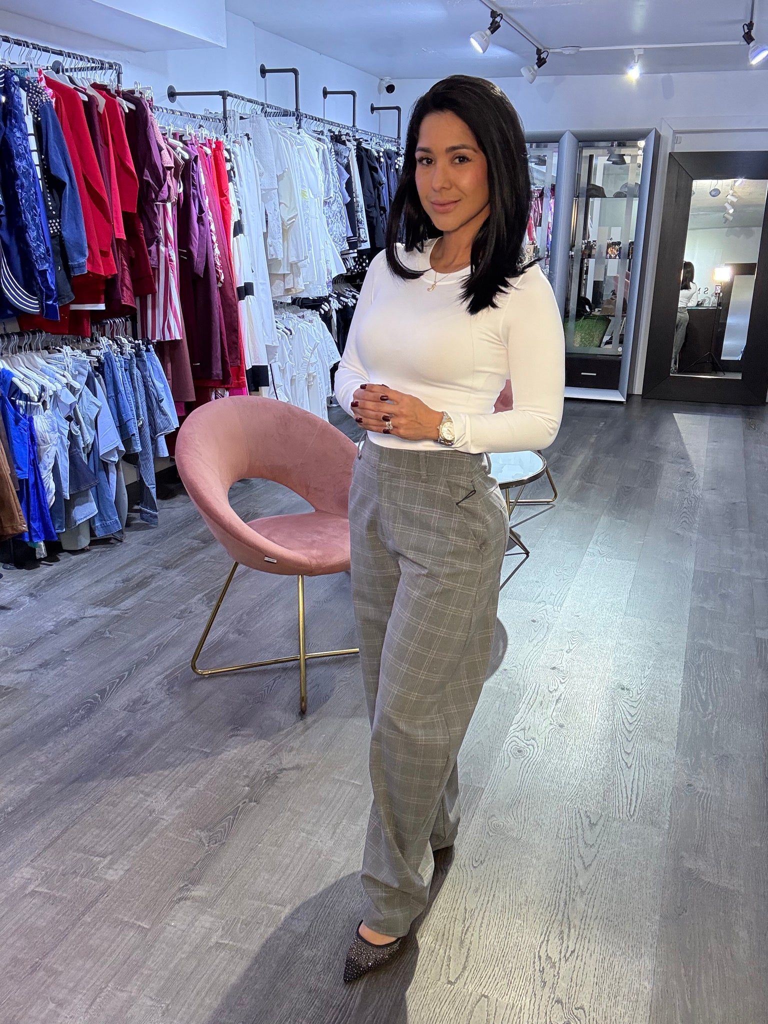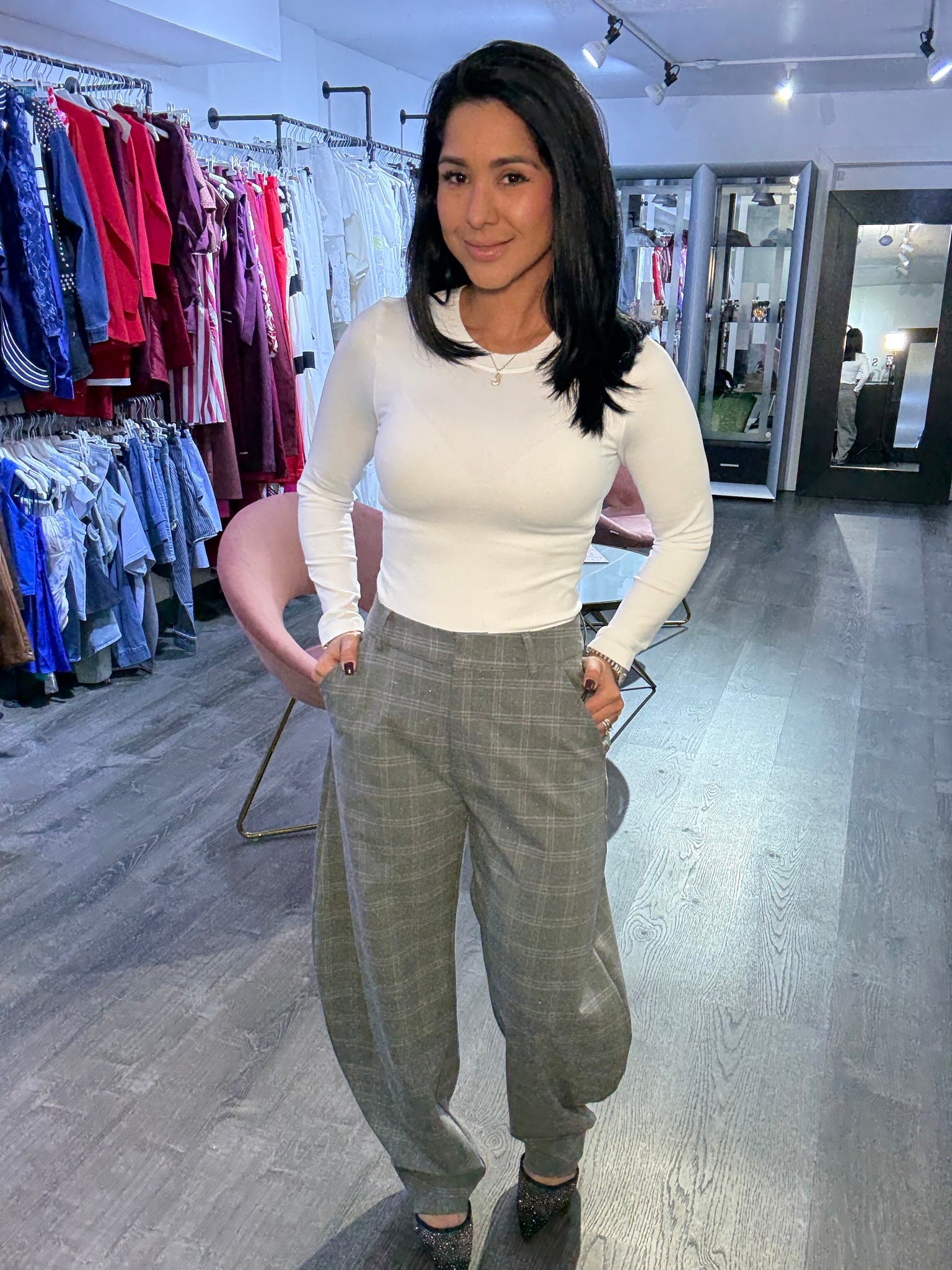 Pantalon tipo barrel de Cuadros con destellos brillantes
