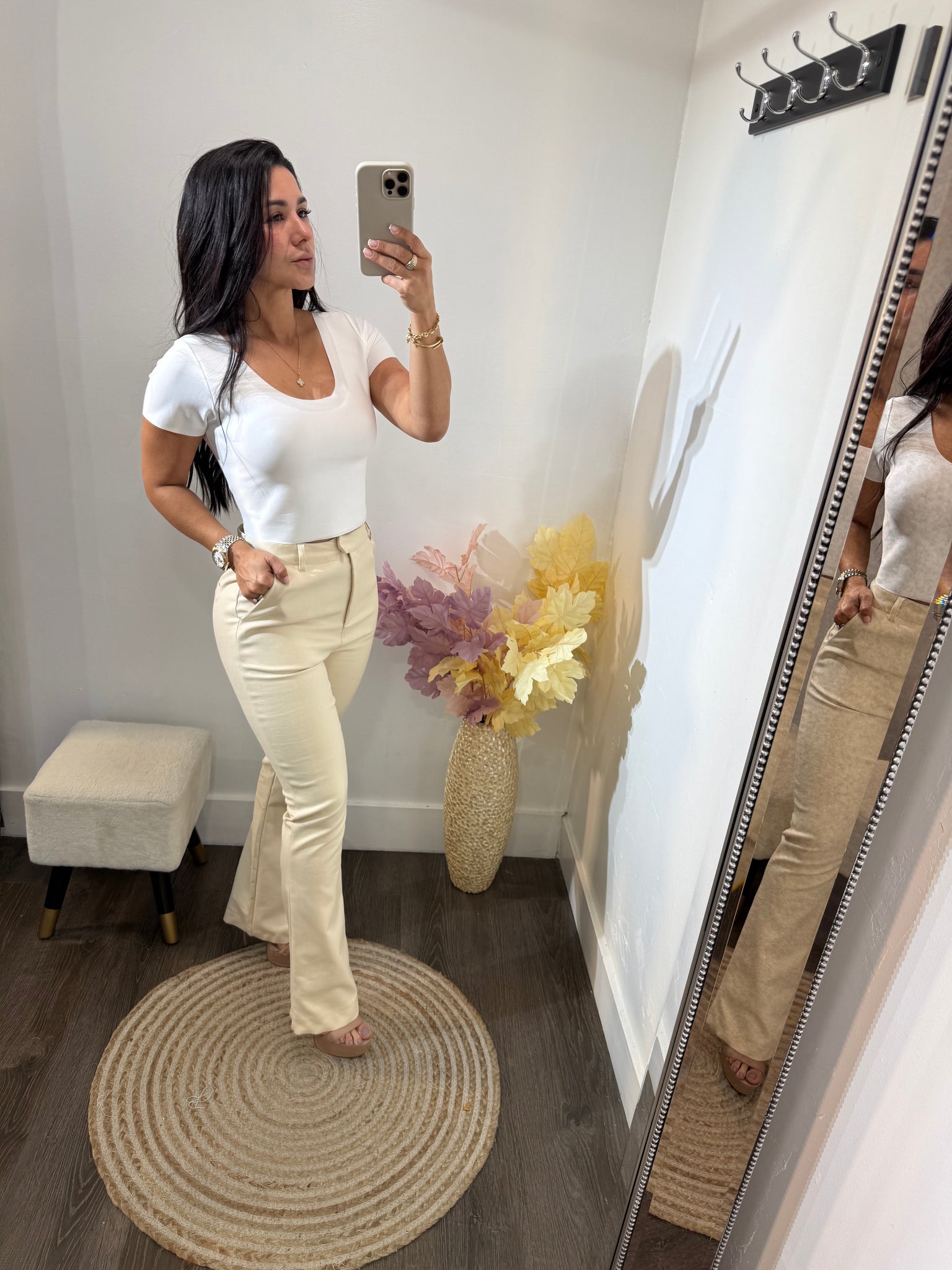 Pantalon alto con strech bota recta