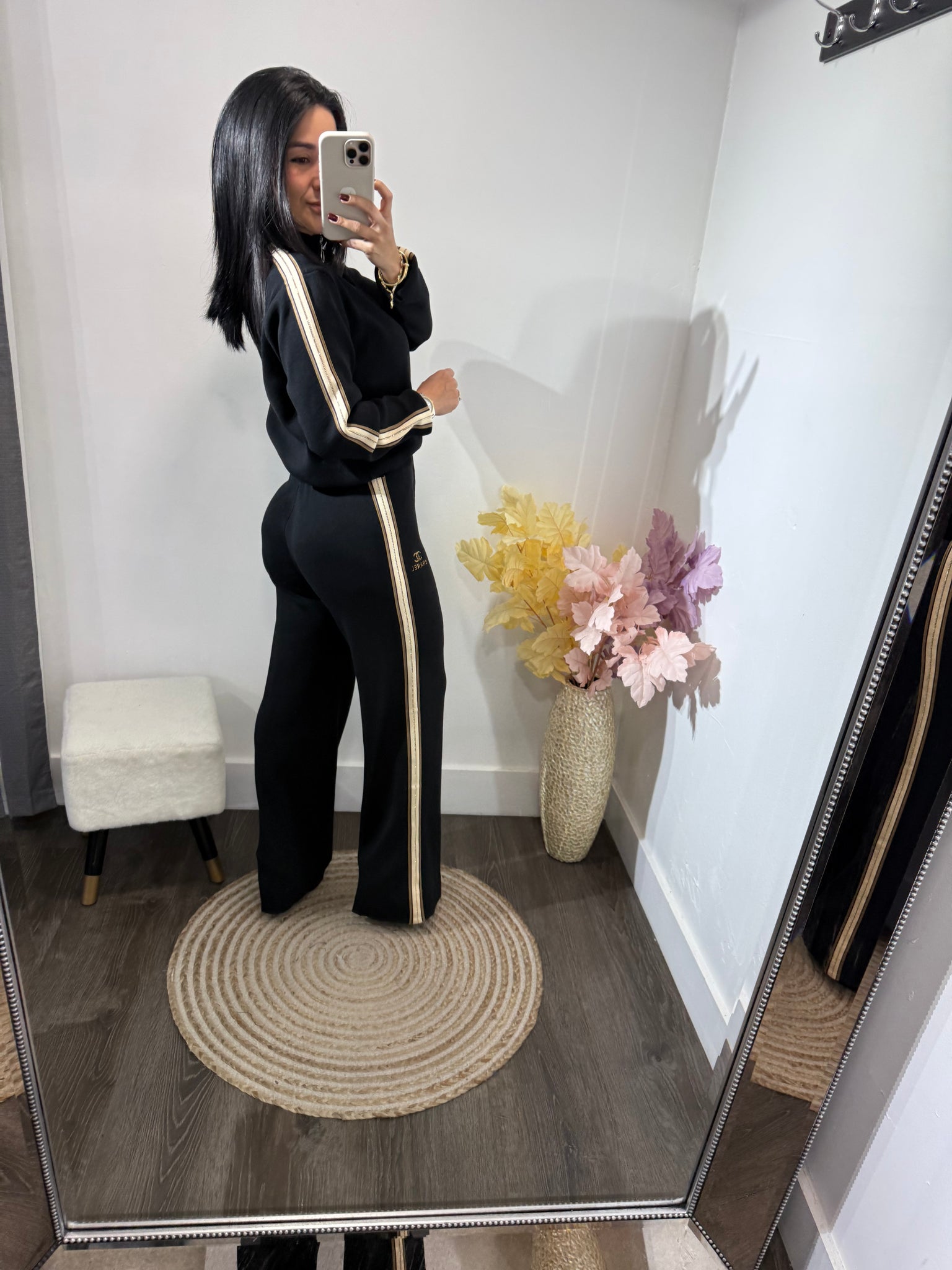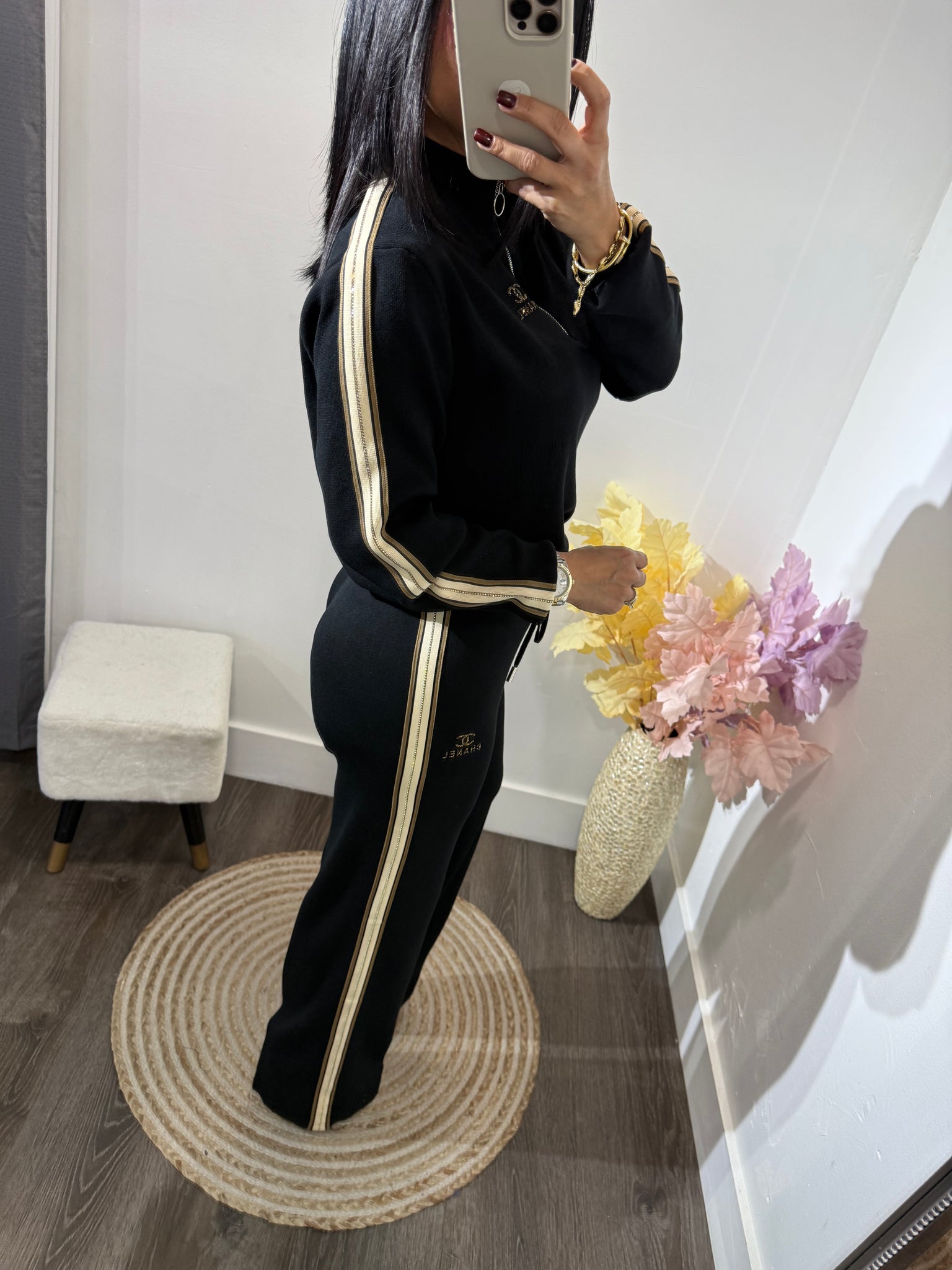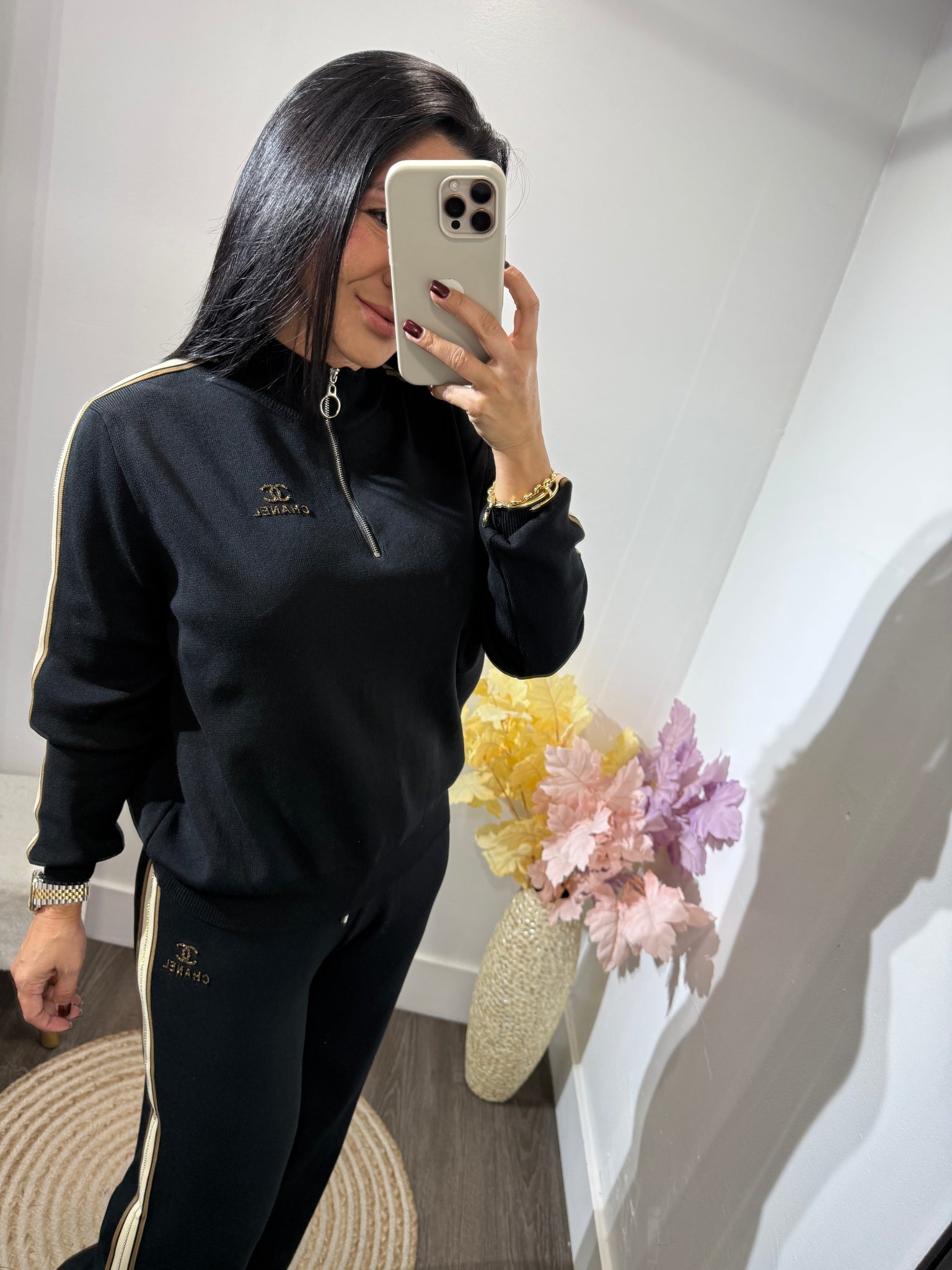 tiene detalles en los laterales y holograma en sweater y pantalon