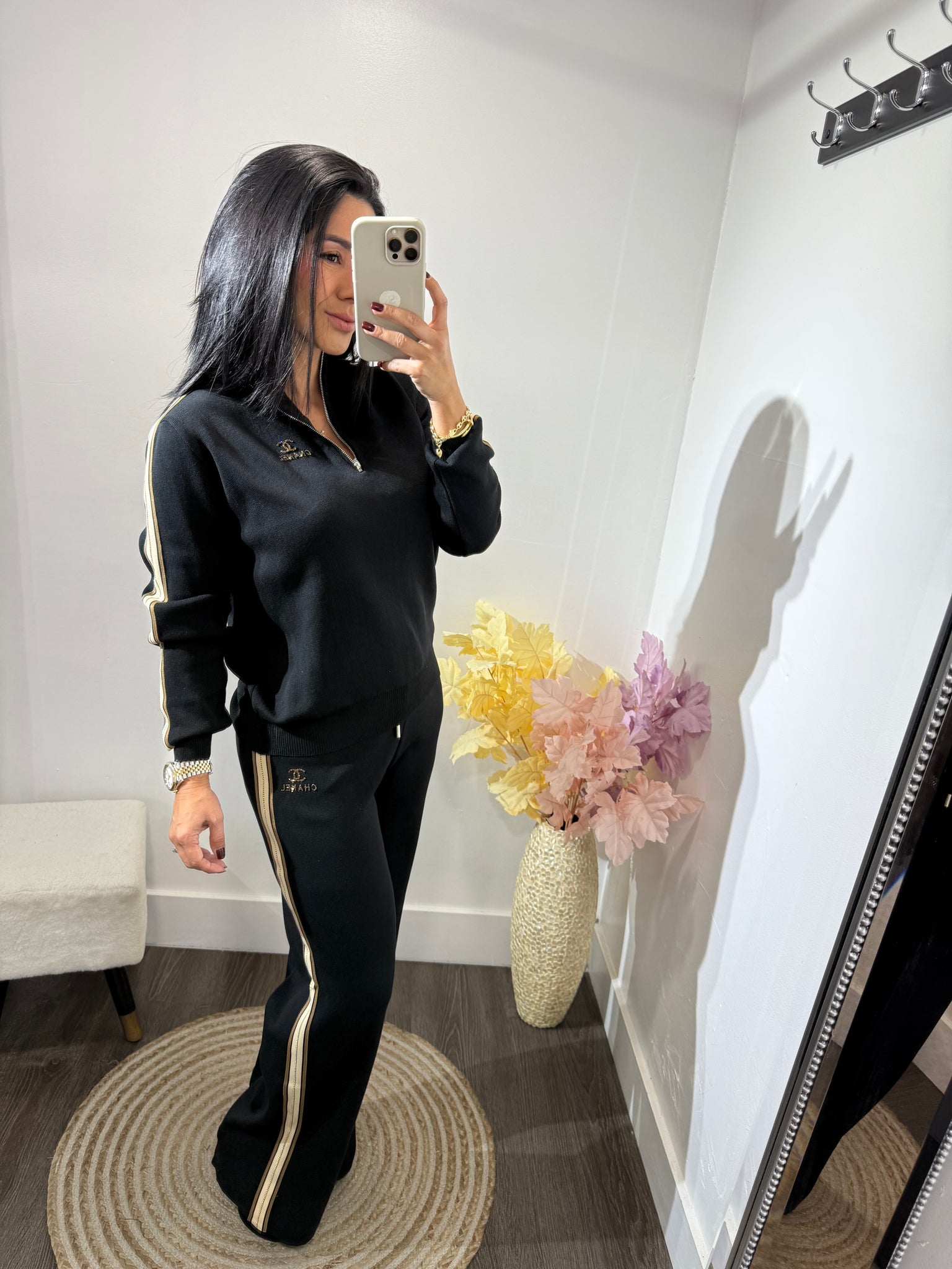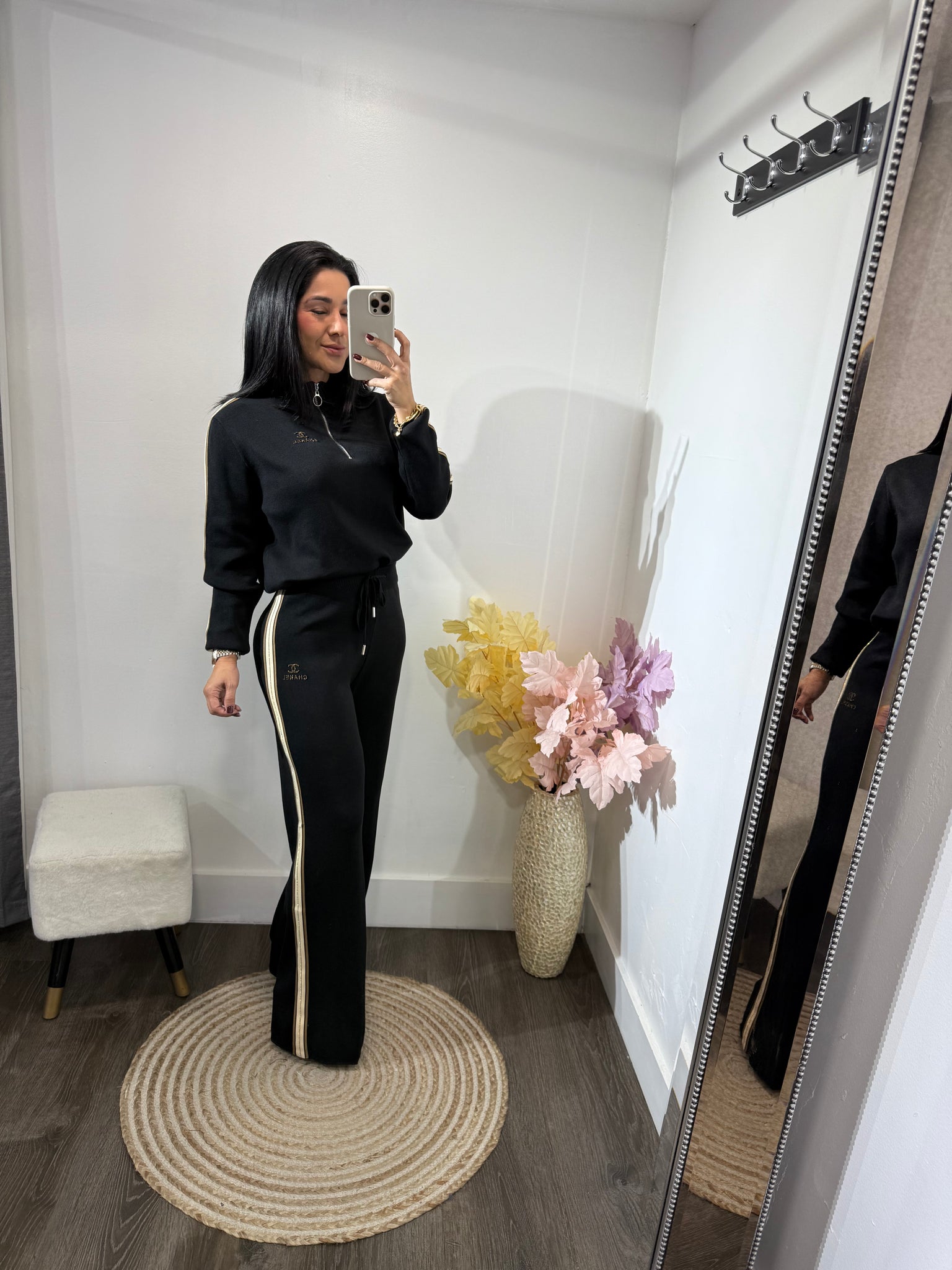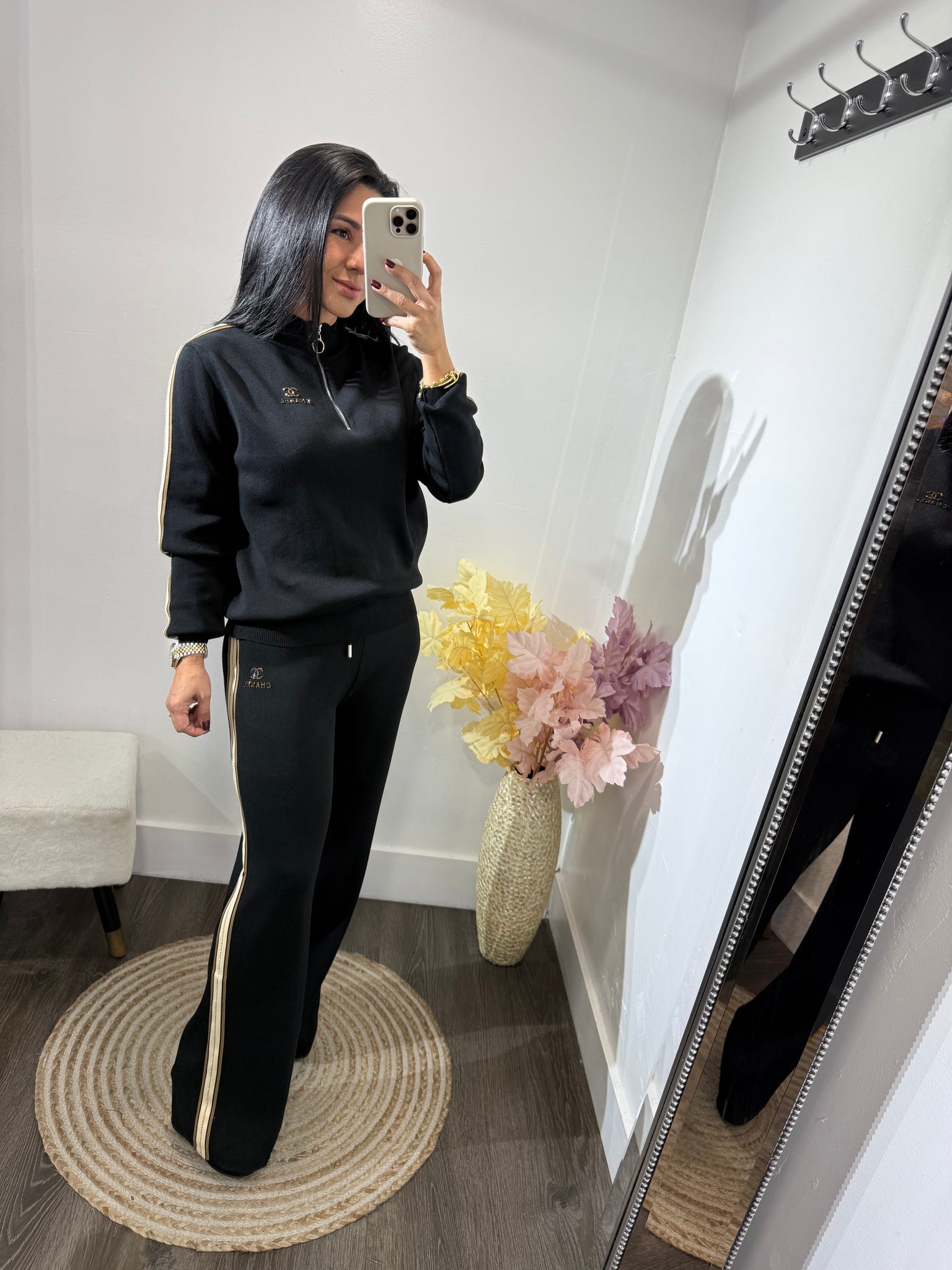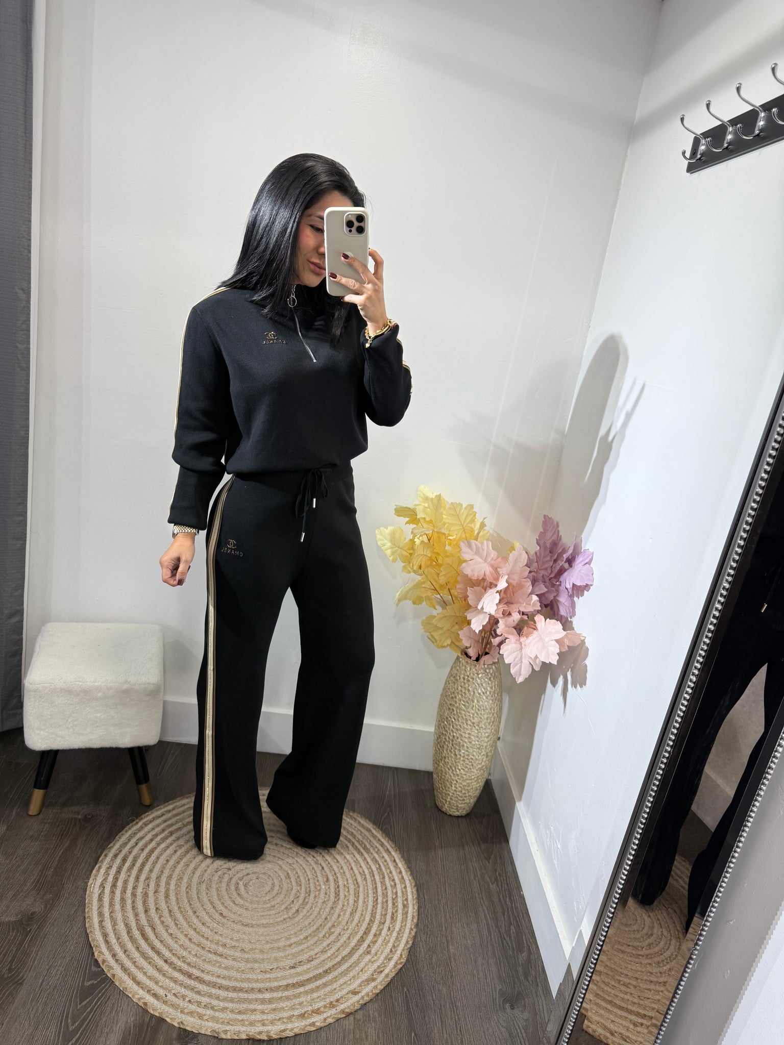 tiene detalles en los laterales y holograma en sweater y pantalon