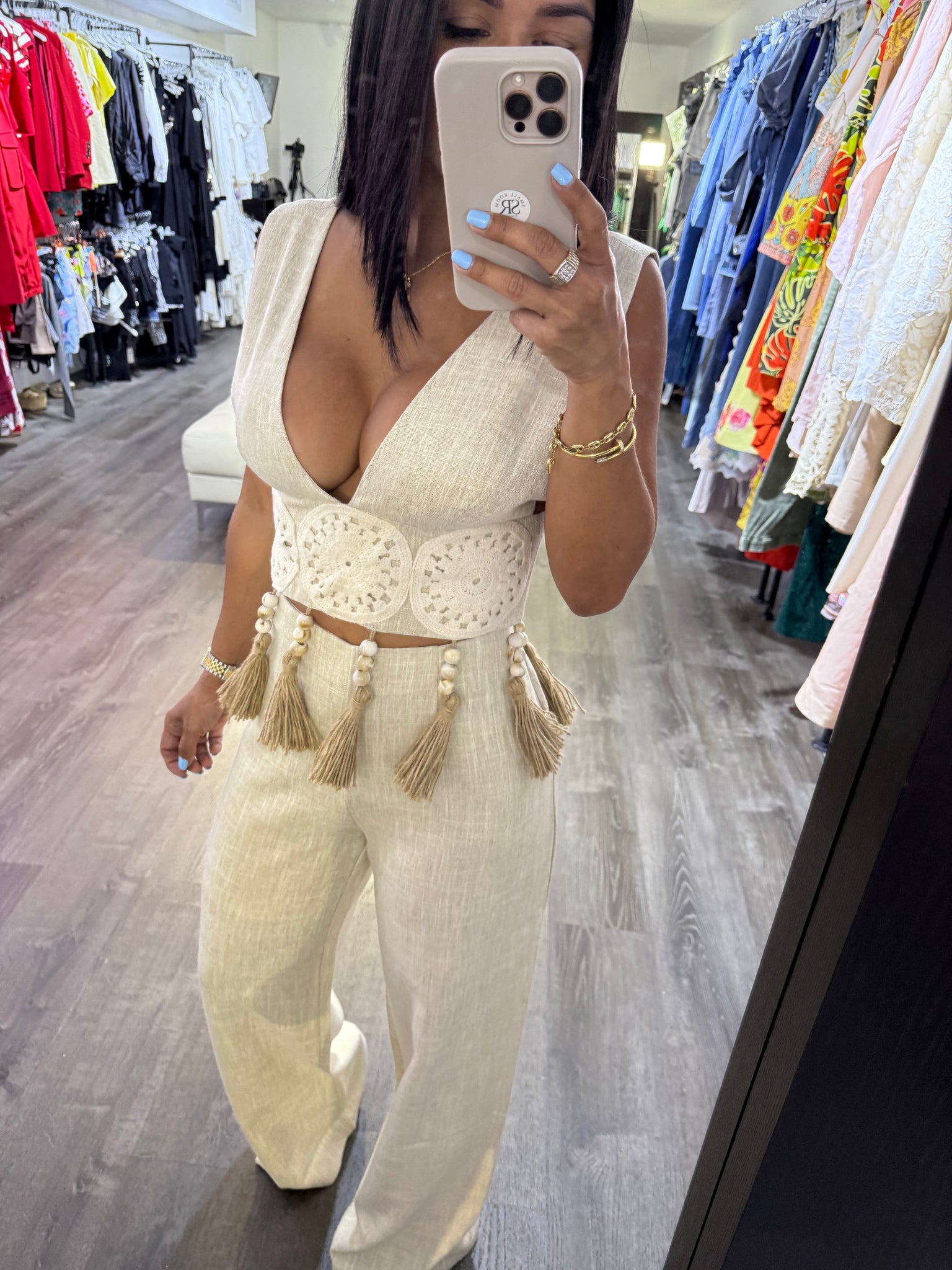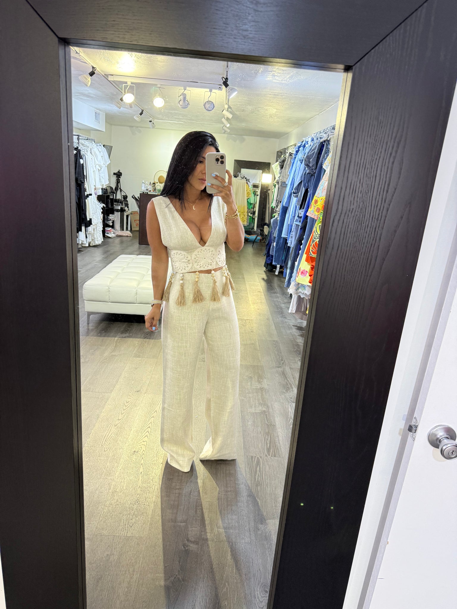 pantalon de Lino tipo palazzo con zipper detras