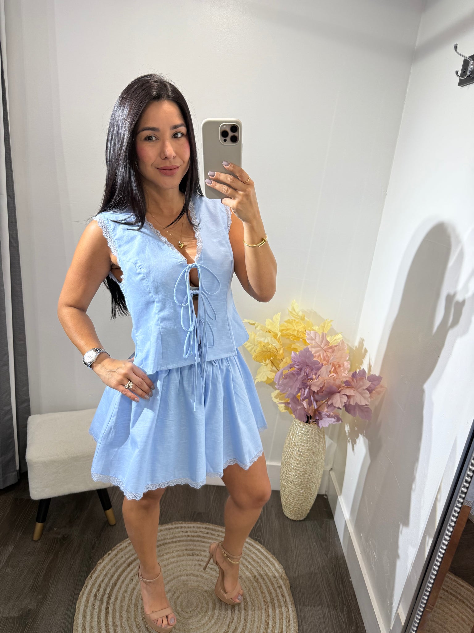 top con detalle de encaje y 3 tirantes para ajustar adelante